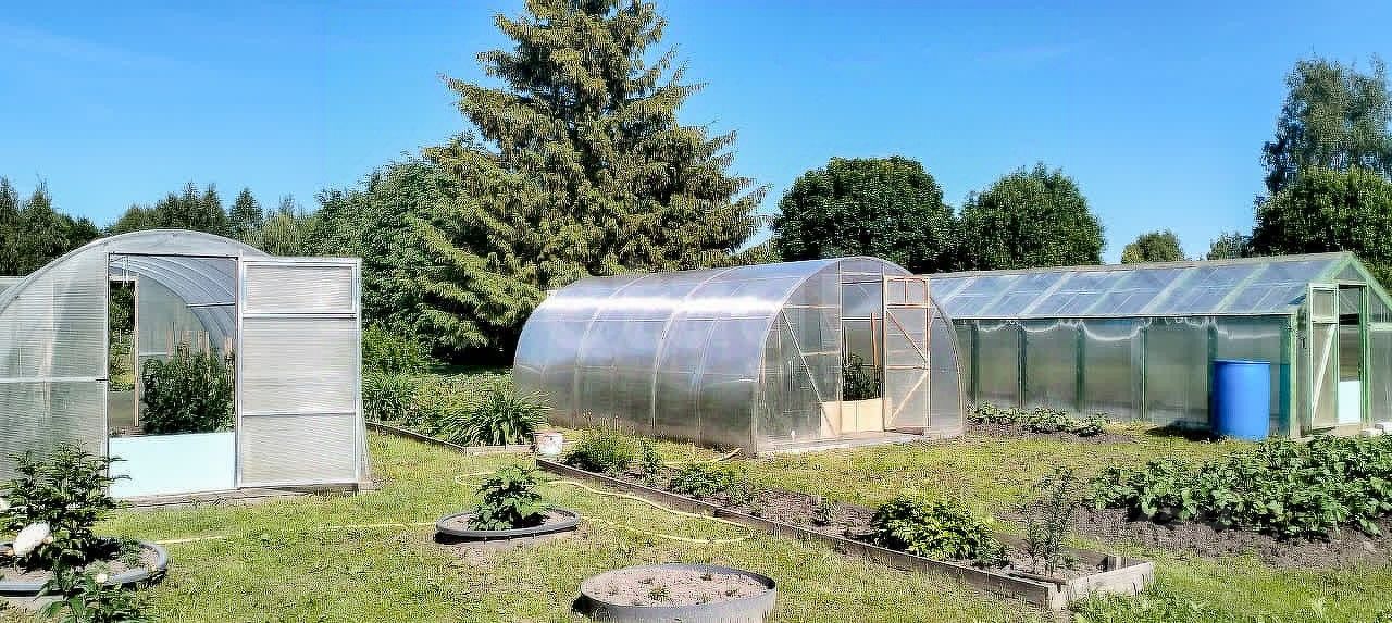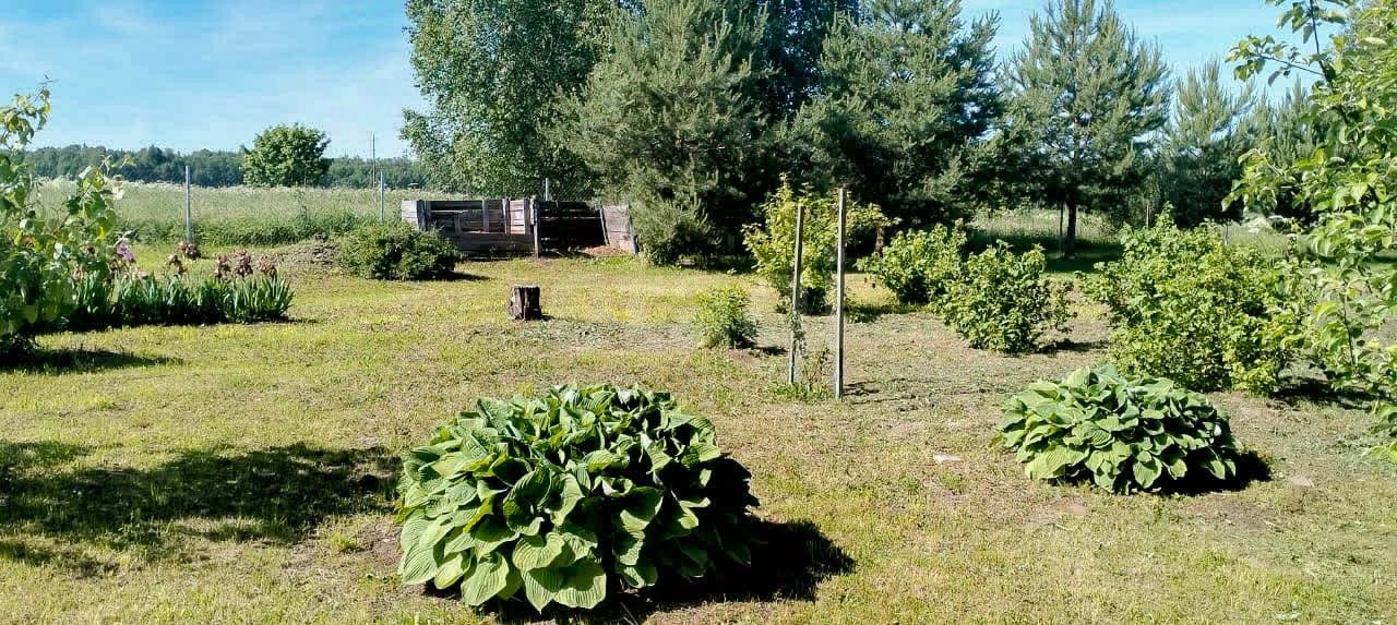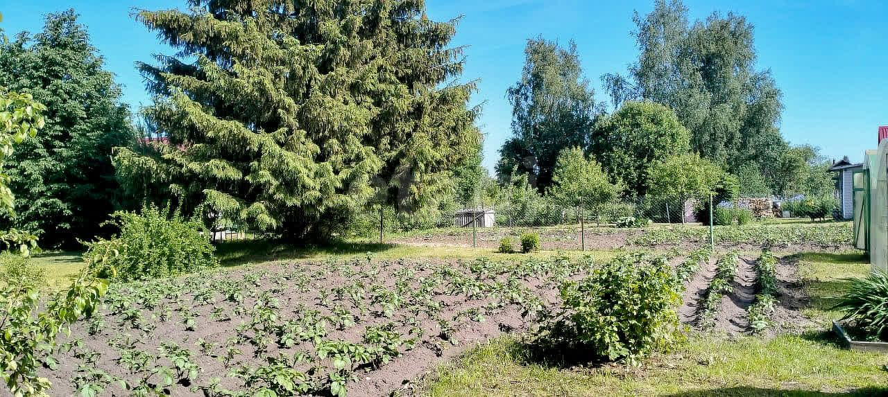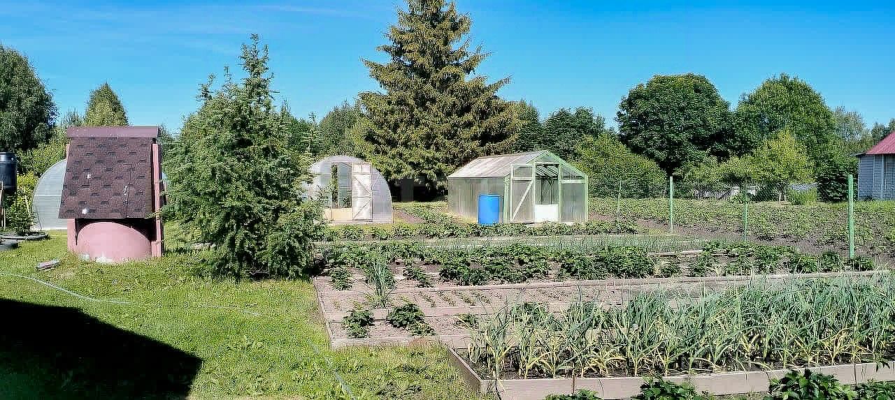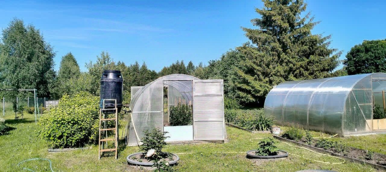Территория ухожена и функциональна: три теплицы, грядки, ягодные кустарники (смородина, жимолость, крыжовник) и плодовые деревья (яблони, груши, вишни) создают основу для самостоятельного ведения хозяйства. Ландшафт дополнен хвойными и декоративными насаждениями, а в пешей доступности находится зарыбленный пруд, что добавляет рекреационную ценность участку.