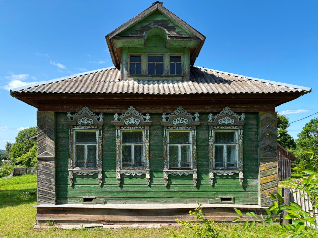 Дом классическая изба, поставленная в традиционном русском стиле с просторными светлыми комнатами. Четыре окна по фасаду украшены ажурными резными наличниками, придающими дому особый колорит. Стены обшиты тесом, крыша покрыта шифером. По центру избы большая русская печь с лежанкой. Центральное водоснабжение проходит по улице, водопроводная колонка в нескольких шагах. Туалет ямного типа расположен в хозяйственной части дома. Так же есть баня, хозяйственный двор для содержания домашнего скота. Большой просторный чердак, высокое сухое подполье для хранения урожая.