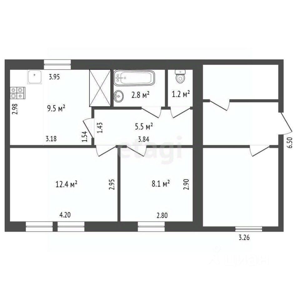 • Удобная планировка: Площадь 50 кв.м. Две изолированные комнаты, раздельный санузел, прихожая и коридор. Пристроены два холодных помещения для хранения вещей.
