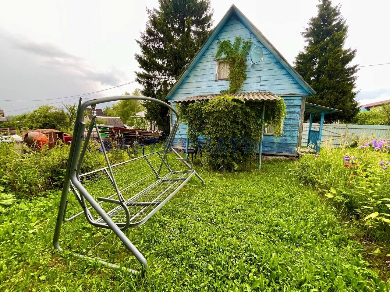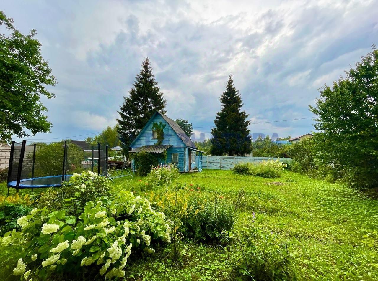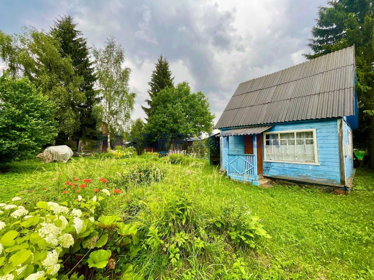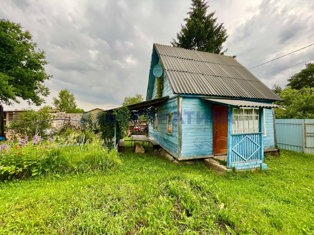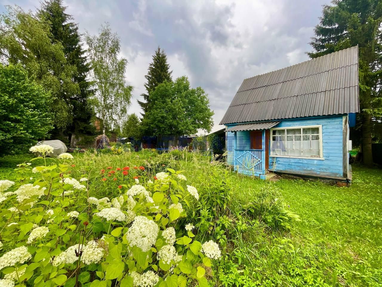 Дом расположен на участке площадью 5 соток. Участок ровный, сухой, ухоженный, огорожен забором. В дачный сезон подается вода для полива. Высажены плодово-ягодные и декоративные насаждения.
