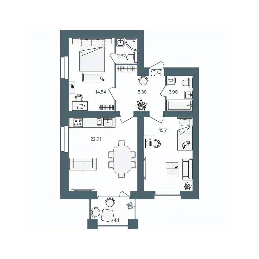 Общая площадь68,99 м2