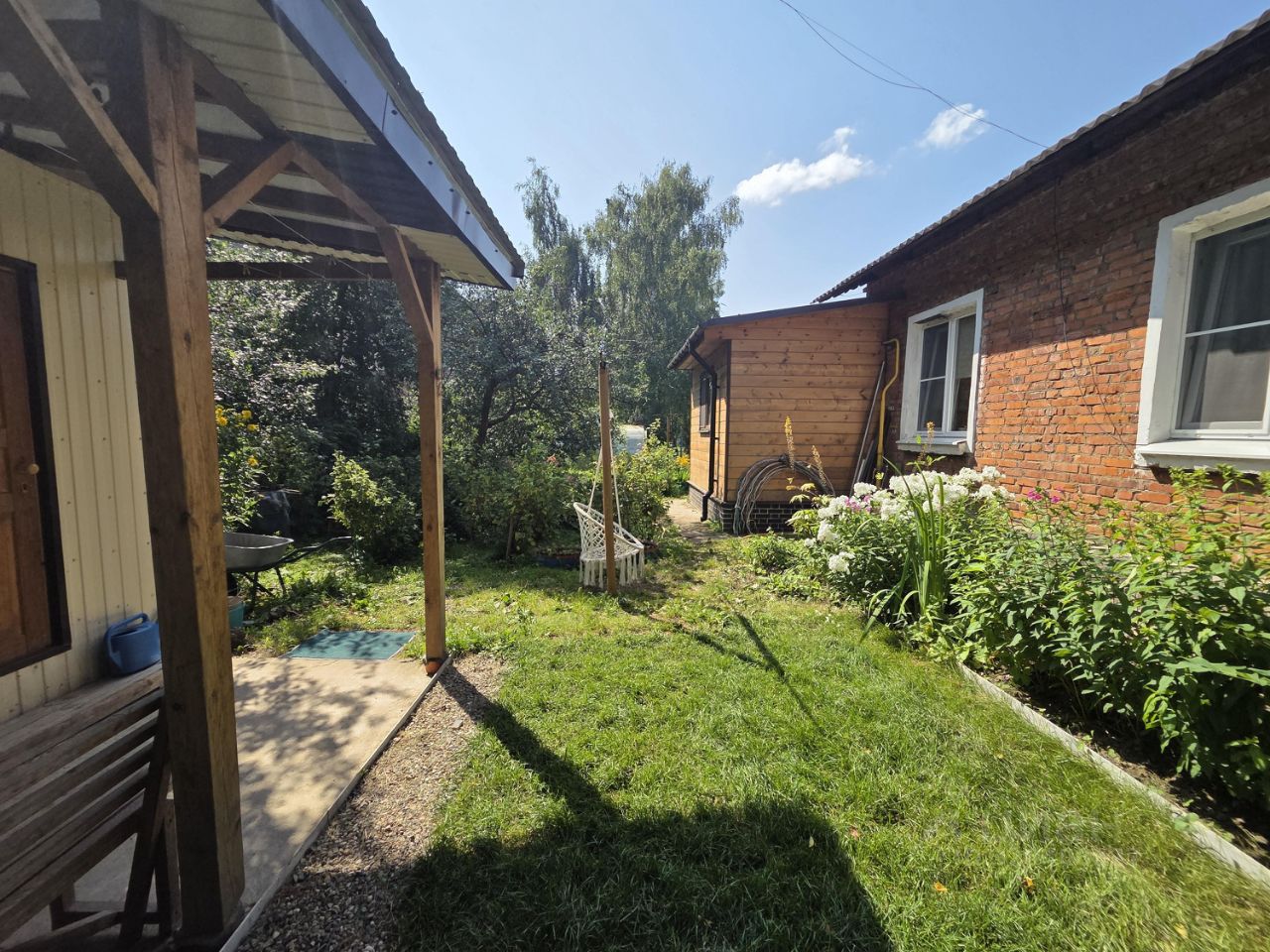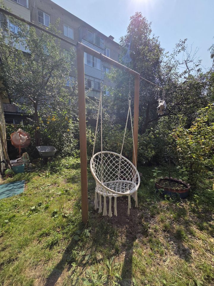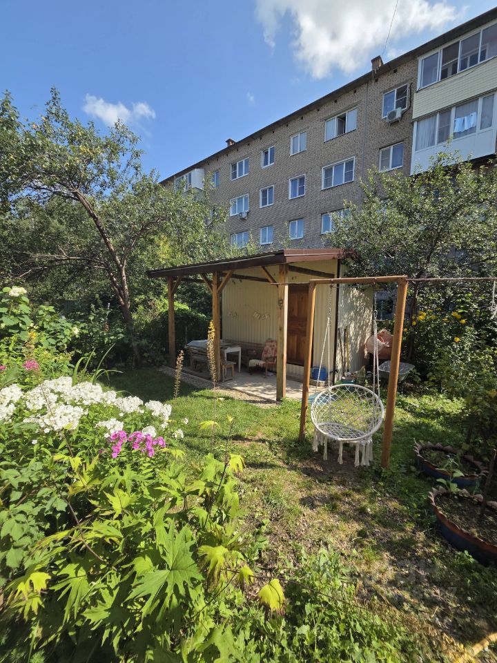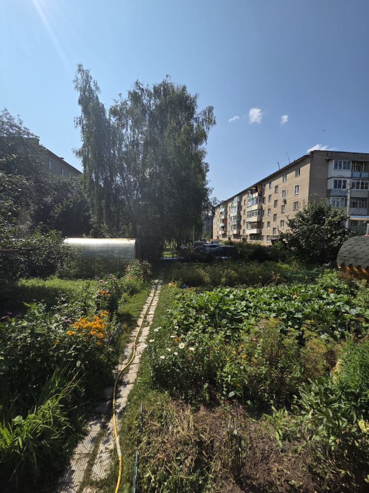 У квартиры есть свой огороженный участок примерно 2 сотки, с теплицей, сарайкой, качелью, зоной барбекю, грядками и множеством шикарных цветов.