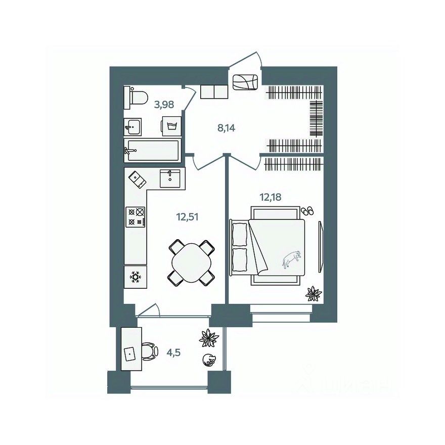 Жилая площадь12,2 м2