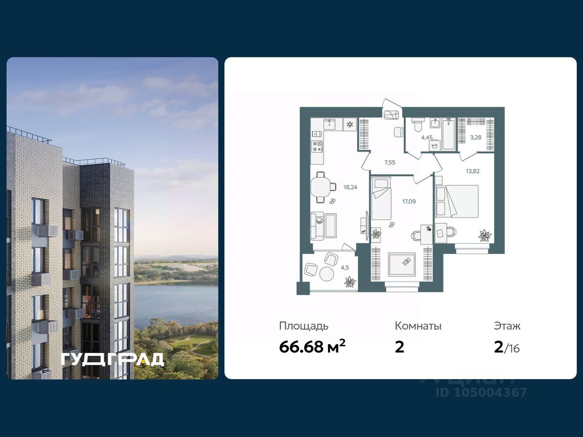 Общая площадь66,68 м2