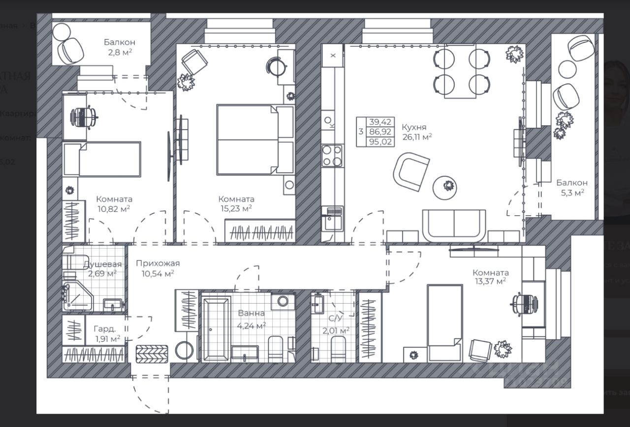 * Уютные 2 застекленные лоджии — идеальное место для чтения сказок на ночь или утренних посиделок с чашкой кофе.