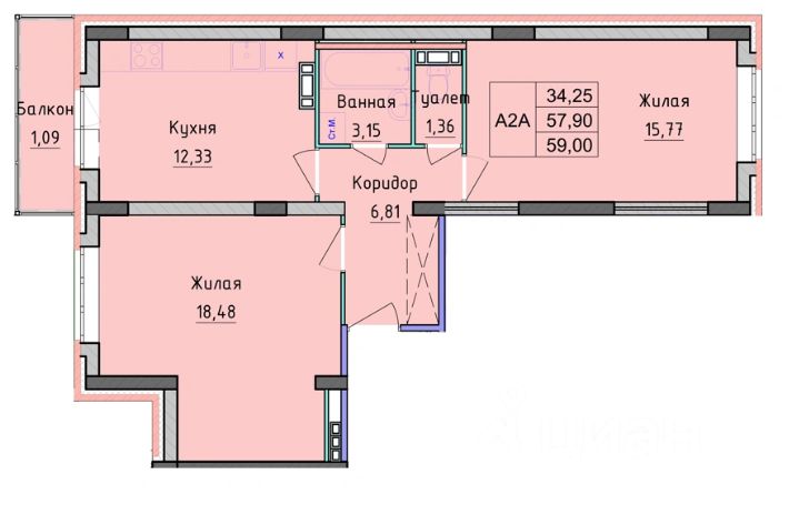 Преимущества квартиры • Изолированные комнаты • Просторная кухня • Большая лоджия • Проведена электрика