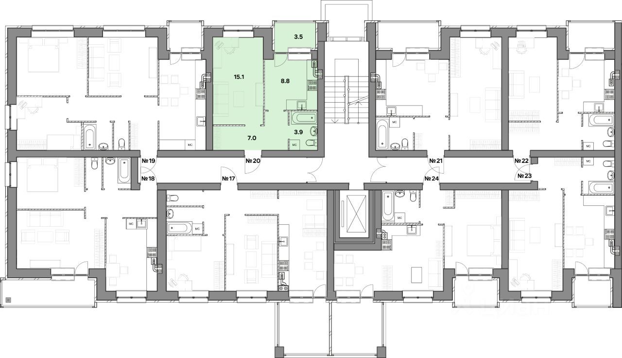 Жилая площадь15,1 м2