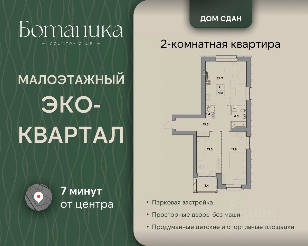 Жилой квартал ''Ботаника'' это островок спокойствия и благополучия посреди шумного города. Наш квартал — новая точка на карте города. И как все новое, он привлекает к себе внимание не только высоким качеством домостроения, но и удачным расположением. Это самый экологически чистый район Ярославля — вокруг сосновый лес и свежий воздух! Квартал обладает отличной транспортной доступностью, всего за пару минут можно пройти к остановке общественного транспорта и быстро добраться в любую точку города. Неподалеку от комплекса пролегают главные магистрали — 10 минут и вы в любом районе Ярославля без пробок! В шаговой доступности есть всё необходимое для комфортной жизни и досуга: супермаркеты, фермерский магазин, Ярославский Зоопарк, озеро ''Техас'' - на его берегу находится памятник природы Смоленский бор. В паре минут располагается Тверицкая набережная реки Волги и вся развитая инфраструктура Заволжского и Кировского районов. Жилой квартал представляет собой комплексную застройку с авторской архитектурой, высокой технологичностью и благоустроенной прилегающей территорией. Организованы детские игровые площадки, спортивный комплекс и отдельная территория для прогулок с домашними питомцами.