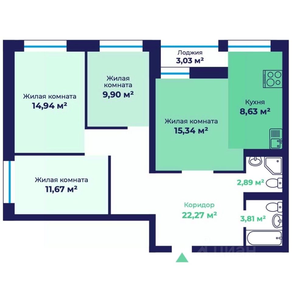 Продаётся 3-комнатная квартира в сданном доме (1-я очередь), срок сдачи: III-кв. 2025, общей площадью 92.98 кв.м., на 1 этаже. ЖК ''АЭРОПАРК'' - это продолжение первого в Ярославле проекта сотрудничества с крупнейшим российским застройщиком ГК ''ПИК'', продолжение работы с ''ПИК-франшиза''. Преимущества жилого комплекса не оставляют сомнений в выборе новой квартиры. Удобное расположение Дом находится в районе пересечения ул.Чернопрудная и ул.Летная - добраться до центра на автомобиле можно за 15 минут. В 2 минутах пешком от жилого комплекса расположены остановки общественного транспорта, на котором можно уехать в любой конец города. Развитая инфраструктура Все, что нужно для комфортной жизни в своем районе - Поблизости находятся четыре детских сада, школа, поликлиника, кафе и магазины. В шаговой доступности расположены гипермаркеты Лента, METRO, благоустроенный парк Судостроителей, Ярославский аквапарк и фитнес-клуб Loft Fitness. Современная обустроенная дворовая территория Вы можете быть спокойны, отпуская своего ребенка во двор на прогулку - территория с видеонаблюдением, отсутствие машин и детская площадка с усовершенствованным покрытием сделают его безопасным для самых маленьких жителей дома. Ребенок всегда сможет самостоятельно вернуться домой - поручни в лифтах расположены на высоте 85 см, а кнопки управления не выше 142 см. Жителям постарше тоже есть чем заняться: спортивная площадка workout для любителей спорта, малые архитектурные формы для созерцателей. Взрослые и дети не мешают друг другу благодаря возрастному зонированию двора. Для автомобилистов на близлежащей территории расположатся охраняемые парковочные места. Велосипедистам тоже есть, где оставить транспорт - рядом с каждым подъездом будет велопарковка. Светлые и безопасные подъезды Чувствуйте себя как дома уже с момента входа в подъезд. В каждом из них будут предусмотрены места для хранения колясок и велосипедов, грузовые и пассажирские лифты импортного производства фирмы KONE. В подъезде будет светло и безопасно благодаря прозрачным входным дверям с антивандальной защищенностью и ярким энергосберегающим лампам с датчиками движения на всех этажах. Подняться на этаж с багажом или коляской не составит труда, ведь вход в подъезд расположен на уровне тротуара. Просторные входные группы, улучшенные подъездные окна, грязезащитное покрытие при входе в подъезд создадут ощущение чистоты и комфорта Вы никогда не встретите в подъезде посторонних лиц - войти в него можно только по индивидуальным смарт-картам, а для пропуска курьеров и соблюдения порядка на первом этаже будет работать консьерж. Встречать гостей удобно благодаря современным домофонам с видеосвязью. Квартиры с отделкой white box White Box включает в себя выполнение следующих видов работ: бетонная стяжка пола, готовая для укладки финишного покрытия,установка окон и подоконников, выравнивание откосов,выравнивание, грунтовка и штукатурка стен,подготовка потолков,проведение электропроводки по всем помещениям,проведение в
