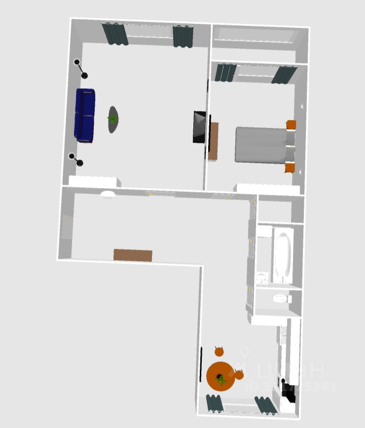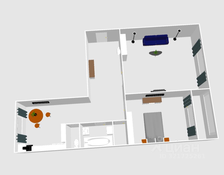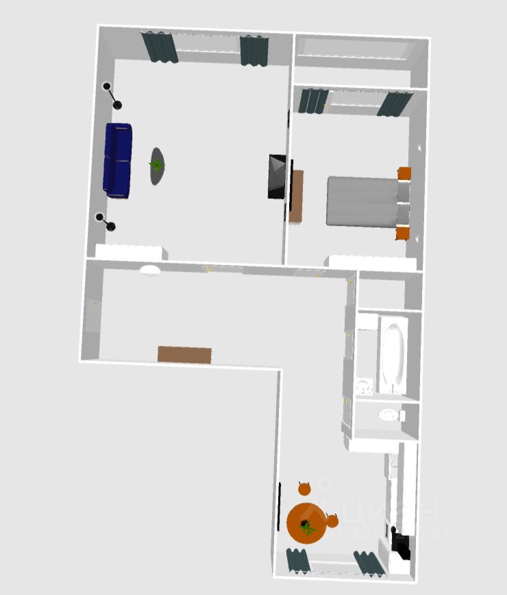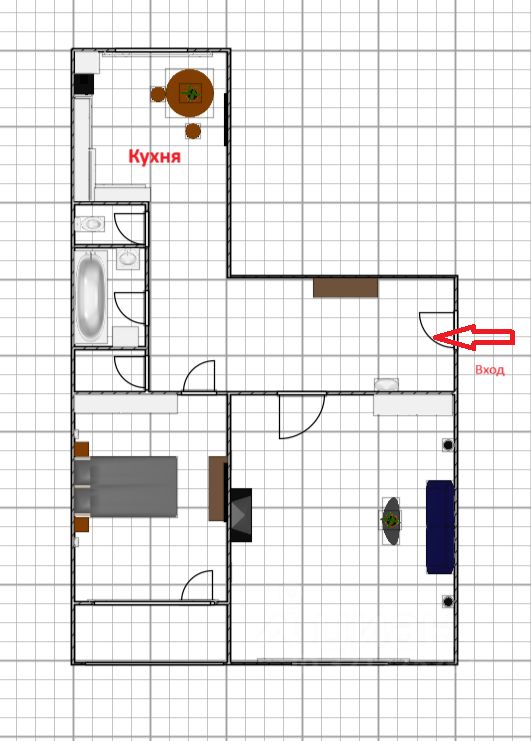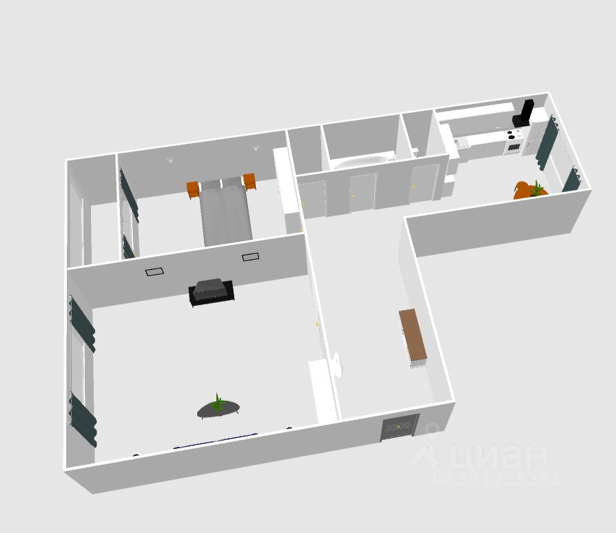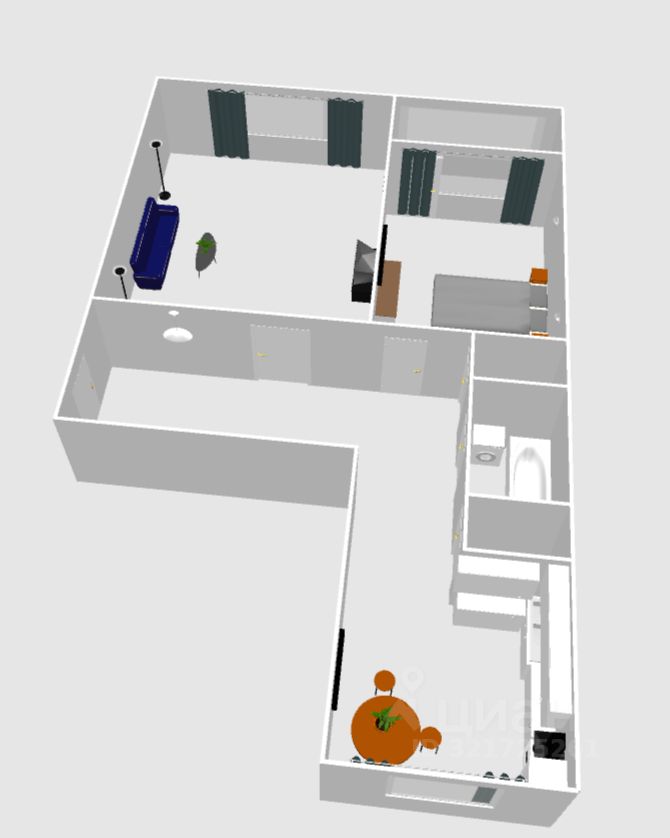 Цена включает в себя: кухонный гарнитур, встроенную технику, вся мебель в спальной комнате, шкаф в прихожей.