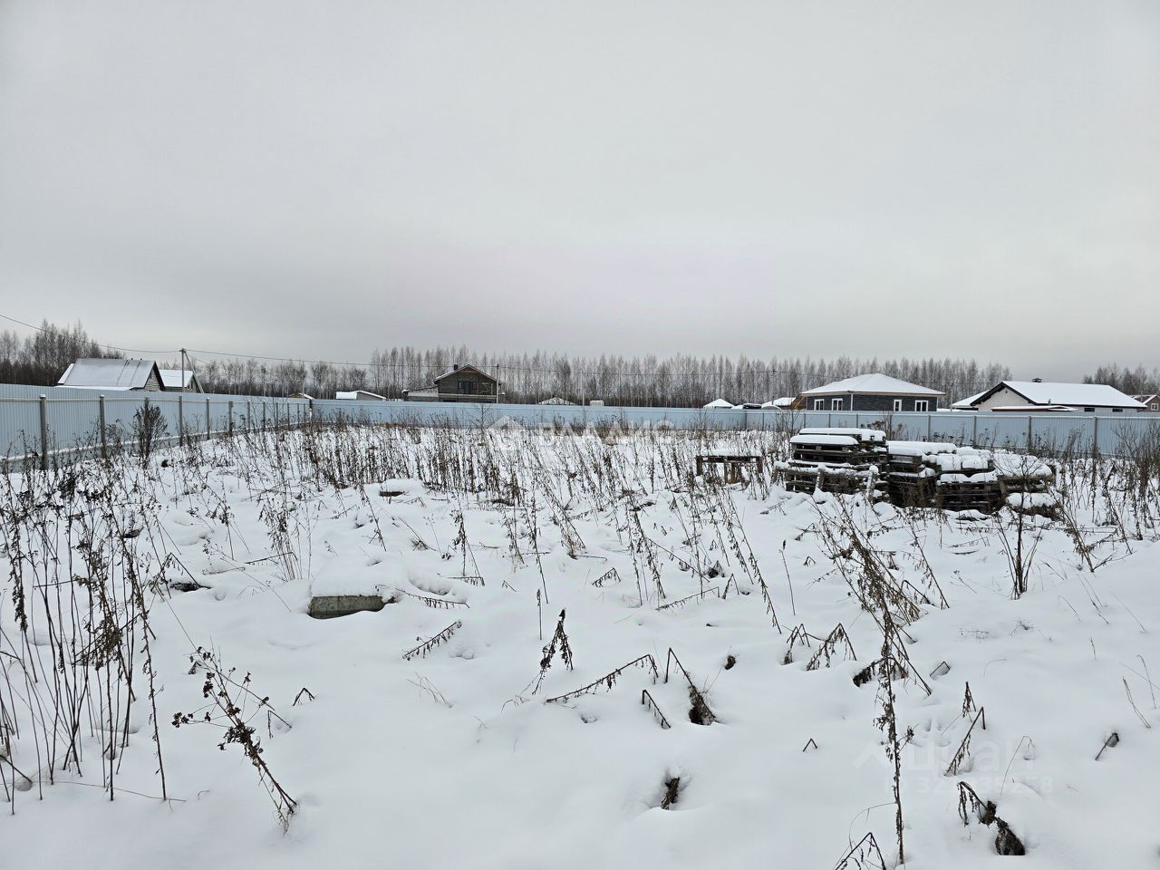 - огорожен по периметру забором из металлопрофиля, есть ворота для въезда, и калитка