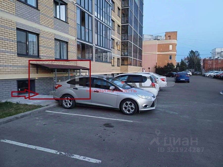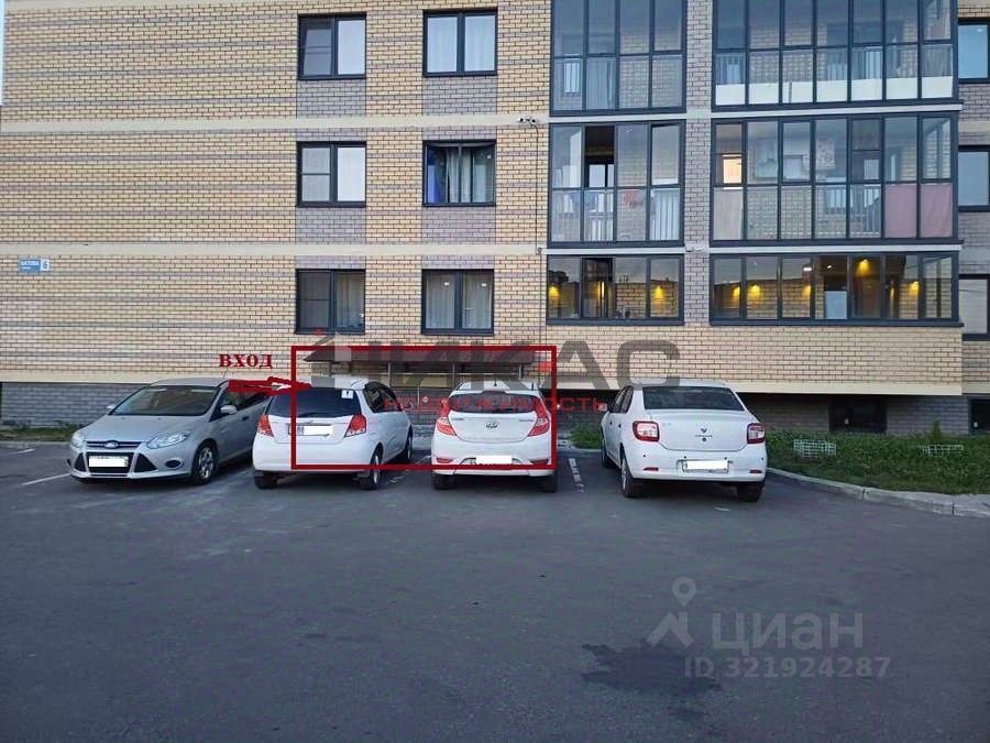 Выделенная парковка для авто перед входом в помещение. Хорошие подъездные пути к зданию. Большое количество многоэтажных домов вокруг.