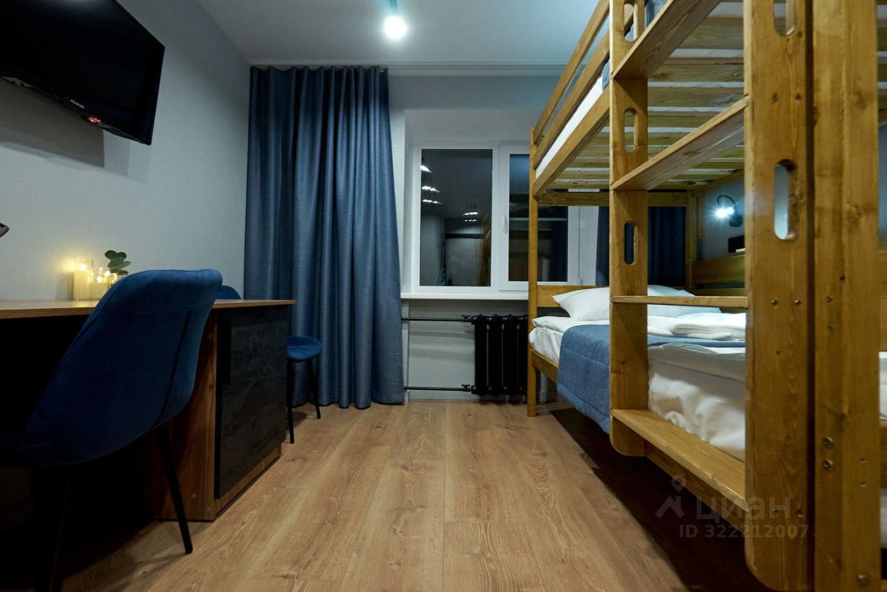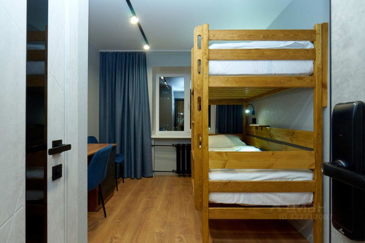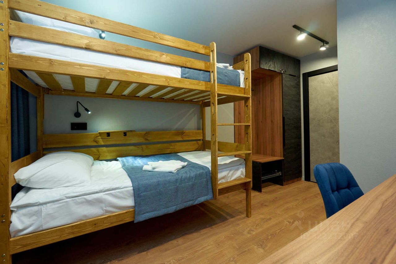 В комнате имеется : Кровать в два уровня размером 90*200 ( для взрослых больших людей).