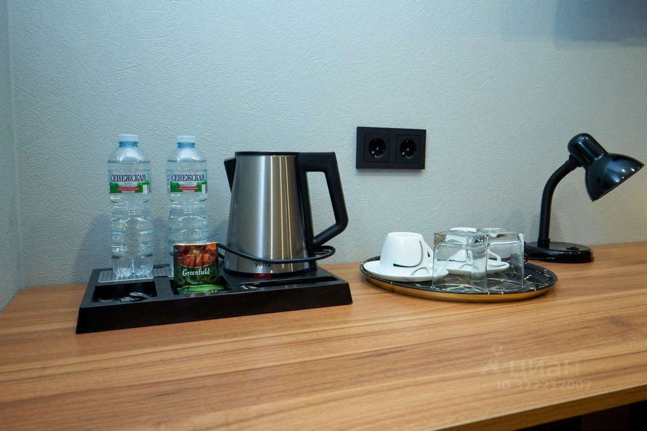 Два удобных кресла, шторы блэкаут, холодильник, чайник, стаканы и кружки, предметы интерьера, фен, телевизор smart с пакетом тв и кино, гладильная доска.