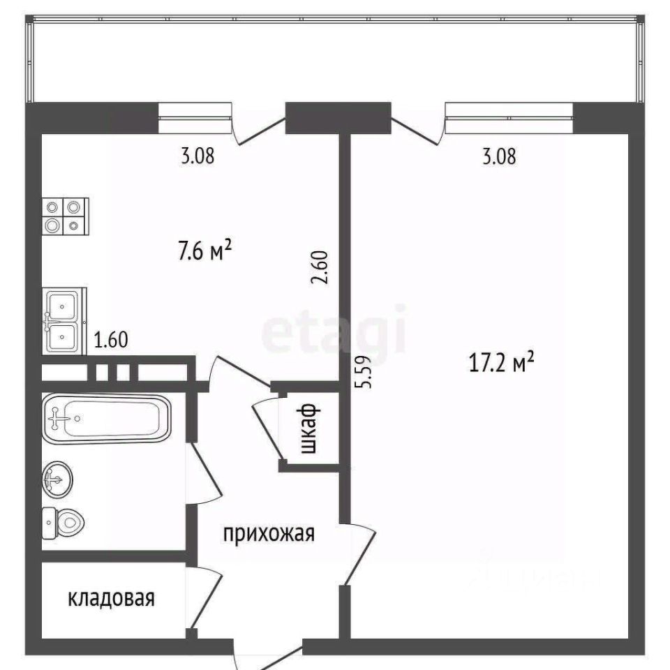 Из кухни и жилой комнаты организован выход на застекленную лоджию длиной 6 метров, что эффективно увеличивает полезное пространство и обеспечивает дополнительную зону для отдыха. Наличие вместительной кладовой комнаты позволяет освободить площадь прихожей от громоздких вещей и систем хранения.