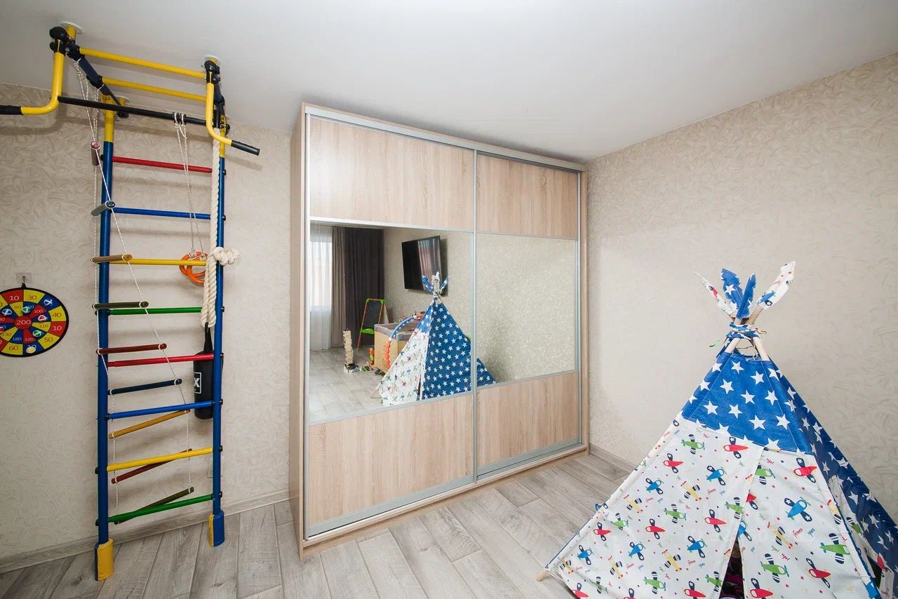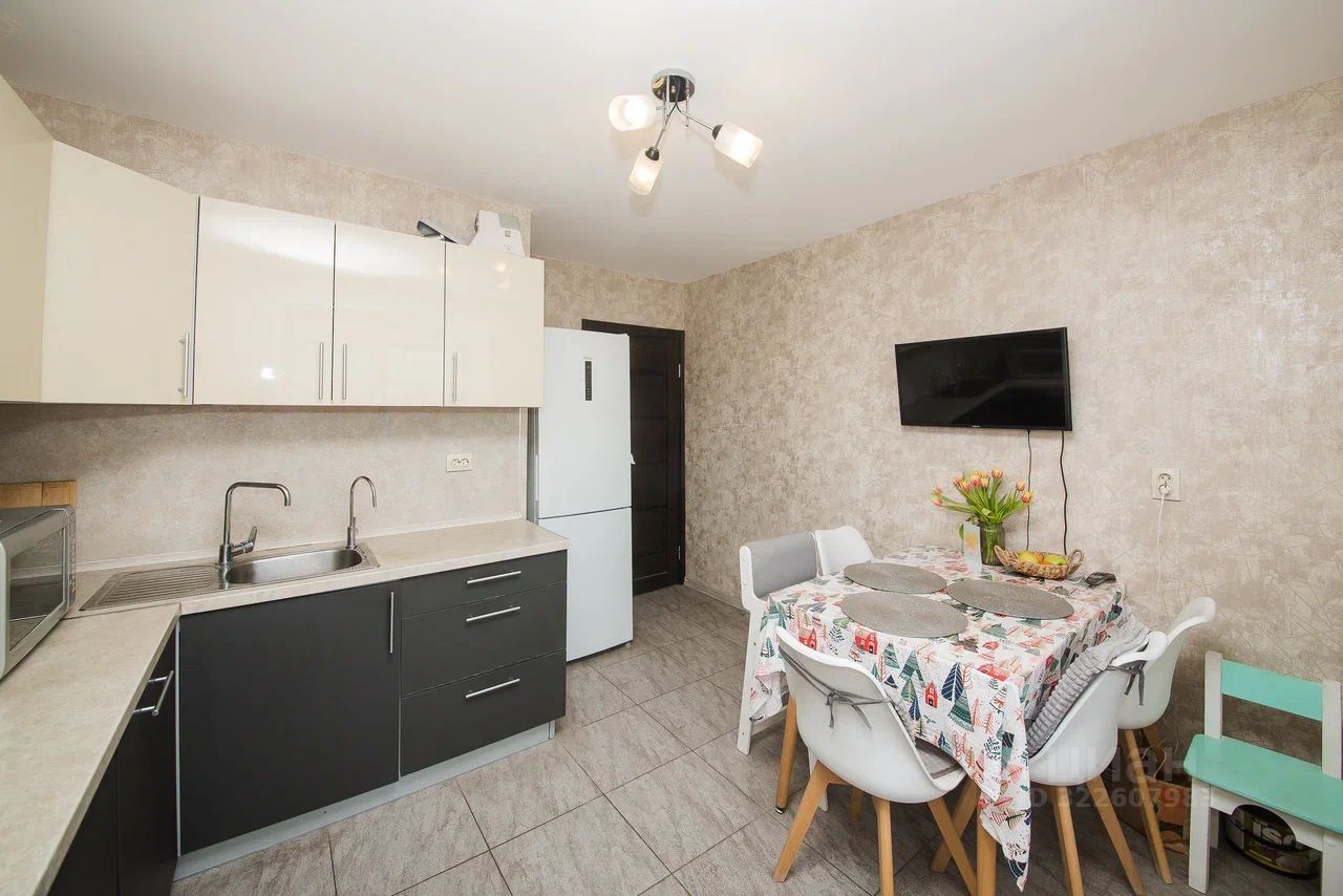 Просторная кухня-гостиная, оборудована встроенной кухней с посудомоечной машиной, раздельный санузел, прихожая с гардеробом, выход на лоджию из спальни, установлен кондиционер.