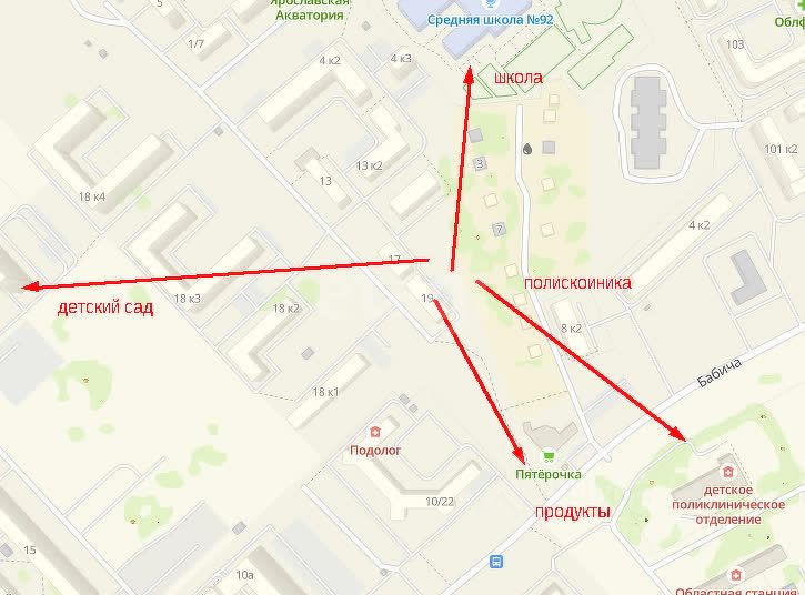 5 минут пешком и ваш старший ребенок в школе, 10 минут пешком и ваш младший ребенок в детском саду, В 5 минутах ходьбы остановка общественного транспорта, Во дворе есть детский городок, В 15 минутах ходьбы расположена детская поликлиника, В шаговой доступности расположены магазины Пятерочка, Магнит, Бристоль.