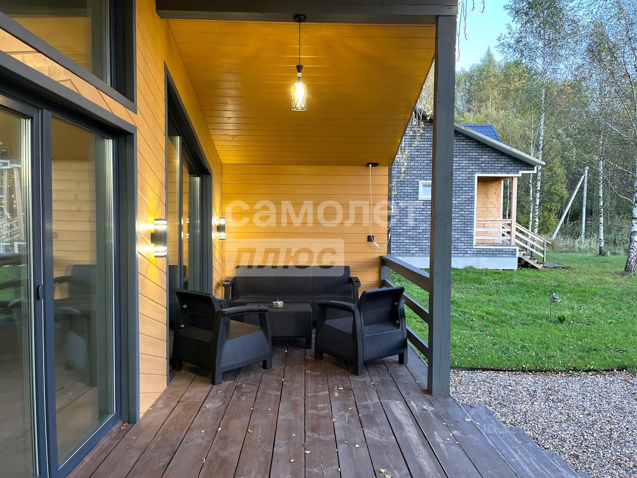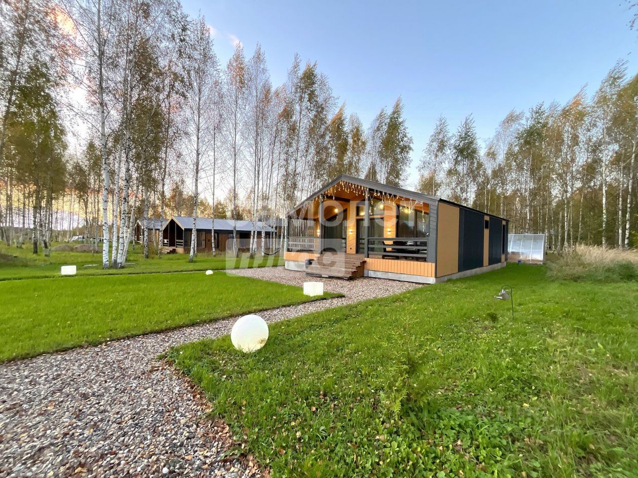 Характеристики: Одноэтажный современный дом с шикарной террасой и дизайнерским ремонтом общей площадью 90 кв.м. расположен на участке 9 соток (ИЖС). Дом полностью меблирован и готов для проживания. Облицовка дома - сочетание имитации бруса + металлических фасадных панелей + полное уличное освещение по всему периметру дома, всё это выражает индивидуальность проекта и стиль дома. Фундамент свайно-винтовой + цоколь полностью обшит, крыша - профнастил, панорамные большие окна ПВХ (двойной профиль, 3 стекла), новая входная дверь с усиленной защитой. Полы залиты полусухой бетонной стяжкой и в один уровень уложена плитка, стены и потолки обшиты имитацией бруса с покраской, в санузле натяжной потолок, установлены межкомнатные двери с магнитными замками, санузел полностью в плитке. Утепление стен и потолка - 200 мм., в дом заведён интернет. Благоустроенный участок богат и насыщен молодыми берёзами, чем заряжает энергией красоты и визуально придаёт пространства, на участке газон. У дома благоустроенный заезд, видеонаблюдение, на участке хоз.блок, зона барбекю. Проживание в таком загородном доме - это ваше здоровье, душевное и физическое, полноценная комфортная жизнь в самом сердце природы.