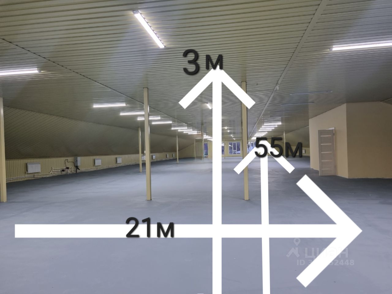 Помещение подходит для организации складских, производственных нужд. Объект обладает необходимыми техническими условиями для комфортной и эффективной работы.