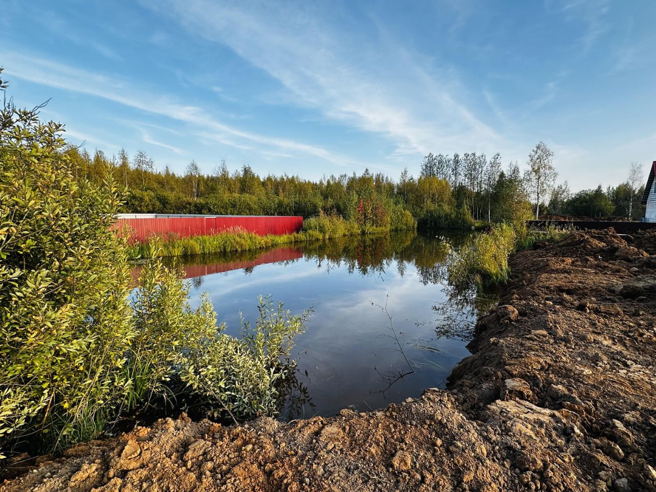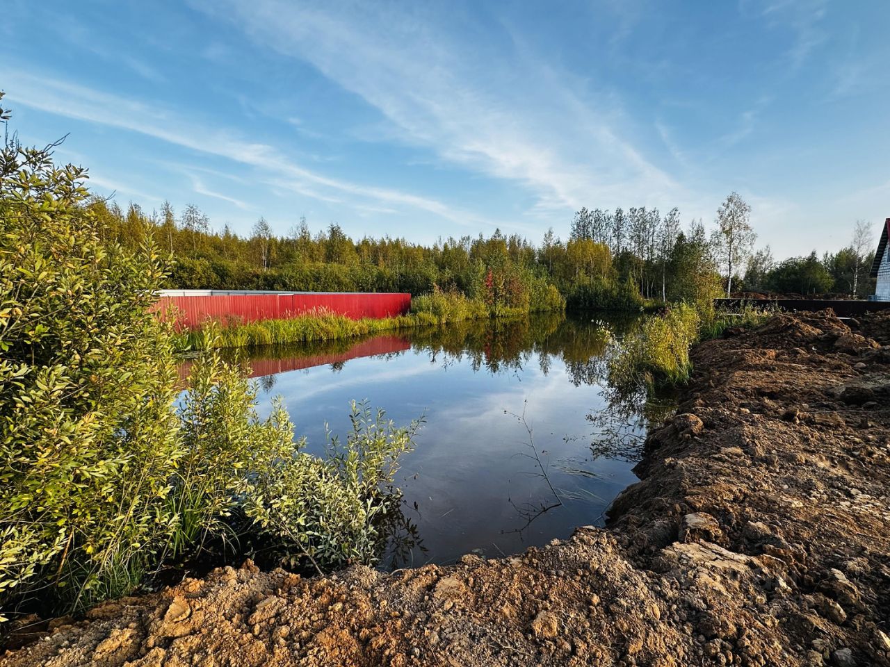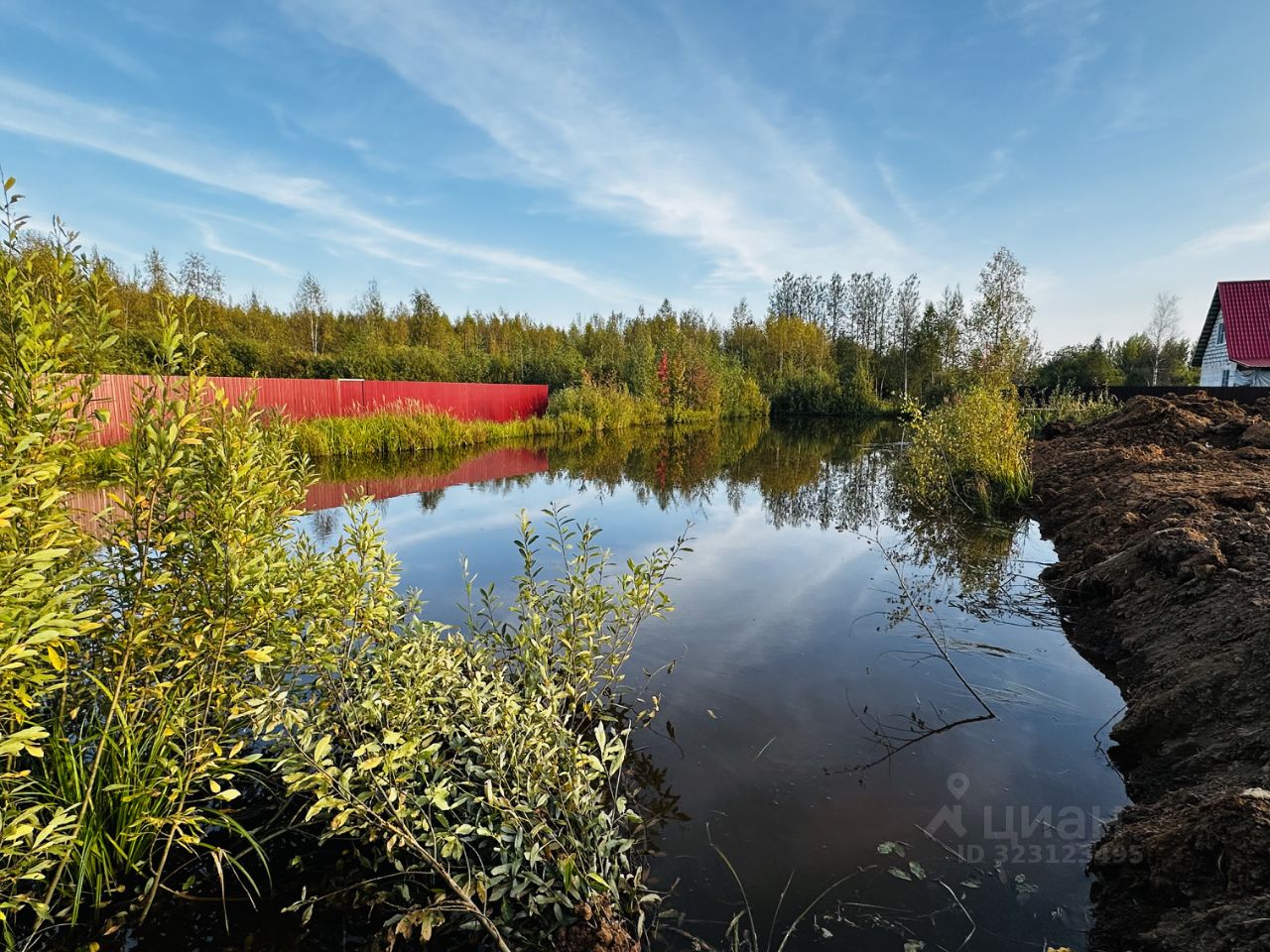 По границе участка расположен пруд.