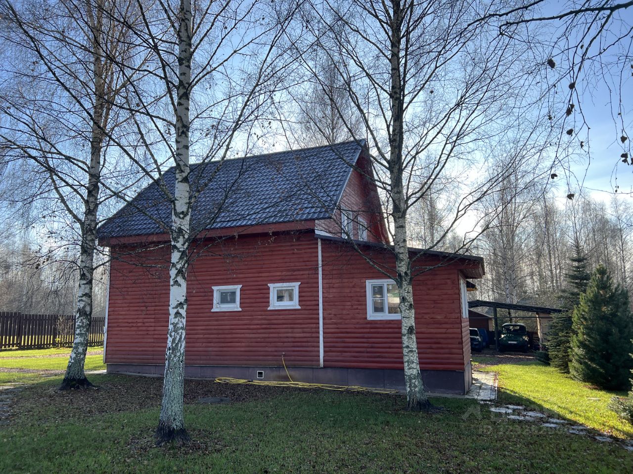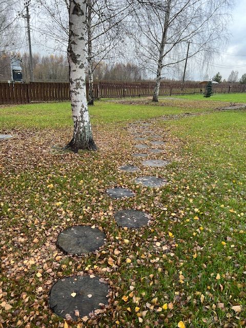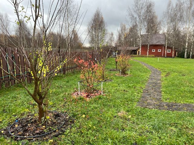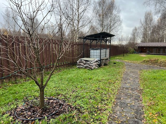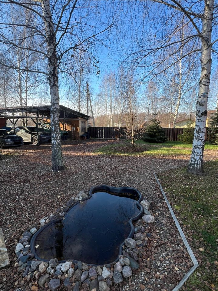 Вся территория вокруг дома огорожена забором, имеет ландшафтный дизайн, с большемерными деревьями более 5 лет высадки (ели, сосны, пихты, клен, рябина, яблони, груши, вишни и тд), посевной газон, прогулочные дорожки, декоративный пруд, галечная отсыпка на подьезде к дому и по территории. Крытые парковочные места вместимостью три автомобиля + постройка для генератора и хранения хоз. инструмента.