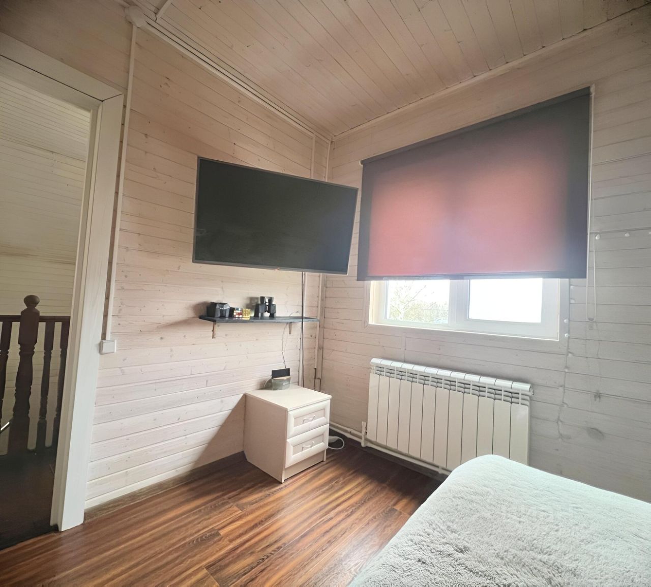 В доме уютная планировка с просторной кухней-гостиной и высоким потолком без перекрытия на второй этаж, куда ведет безопасная широкая лестница. На втором этаже две изолированные спальные комнаты и второй санузел. Деревянная отделка стен и потолков, плитка и ламинат на полу, пластиковые окна, металлическая входная дверь. В доме есть все для комфортного проживания семьи: вся мебель, бытовая техника, техническое оснащение остаются новому хозяину, что называется заходи и живи.