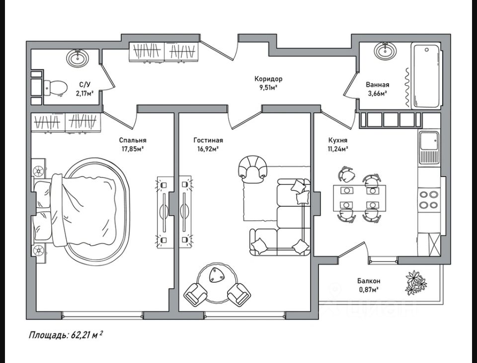 ПРОДАЁТСЯ уютная двухкомнатная квартира площадью 62,21м2 с частичным ремонтом. Реальная цена и квартира.