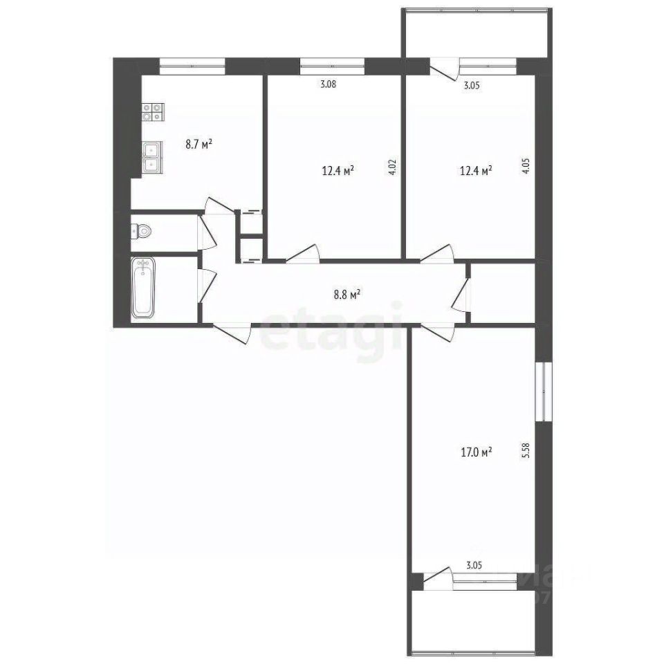 Просторная и теплая квартира в панельном утепленном доме, где даже зимой балкон и лоджия остаются открытыми благодаря качественной теплоизоляции.