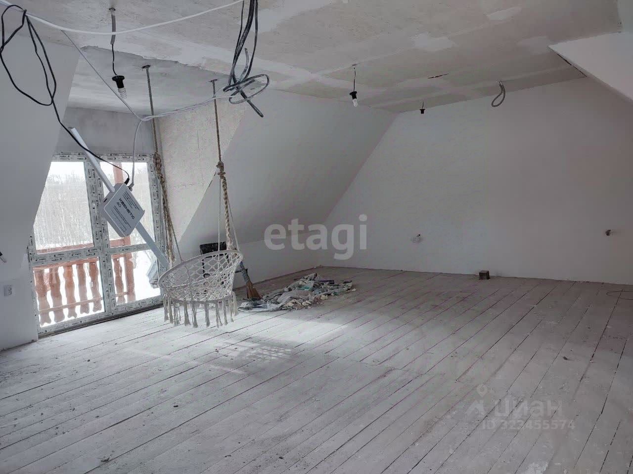 Дом построен в 2015 г. Первый этаж жилой, второй - большая комната свободной планировки. Во всем доме установлены пластиковые окна. На 1-м этаже располагается большая жилая комната, кухня-гостиная и санузел. В комнате - натяжные потолки, теплый электрический пол, покрытый линолеумом, на стенах - обои.