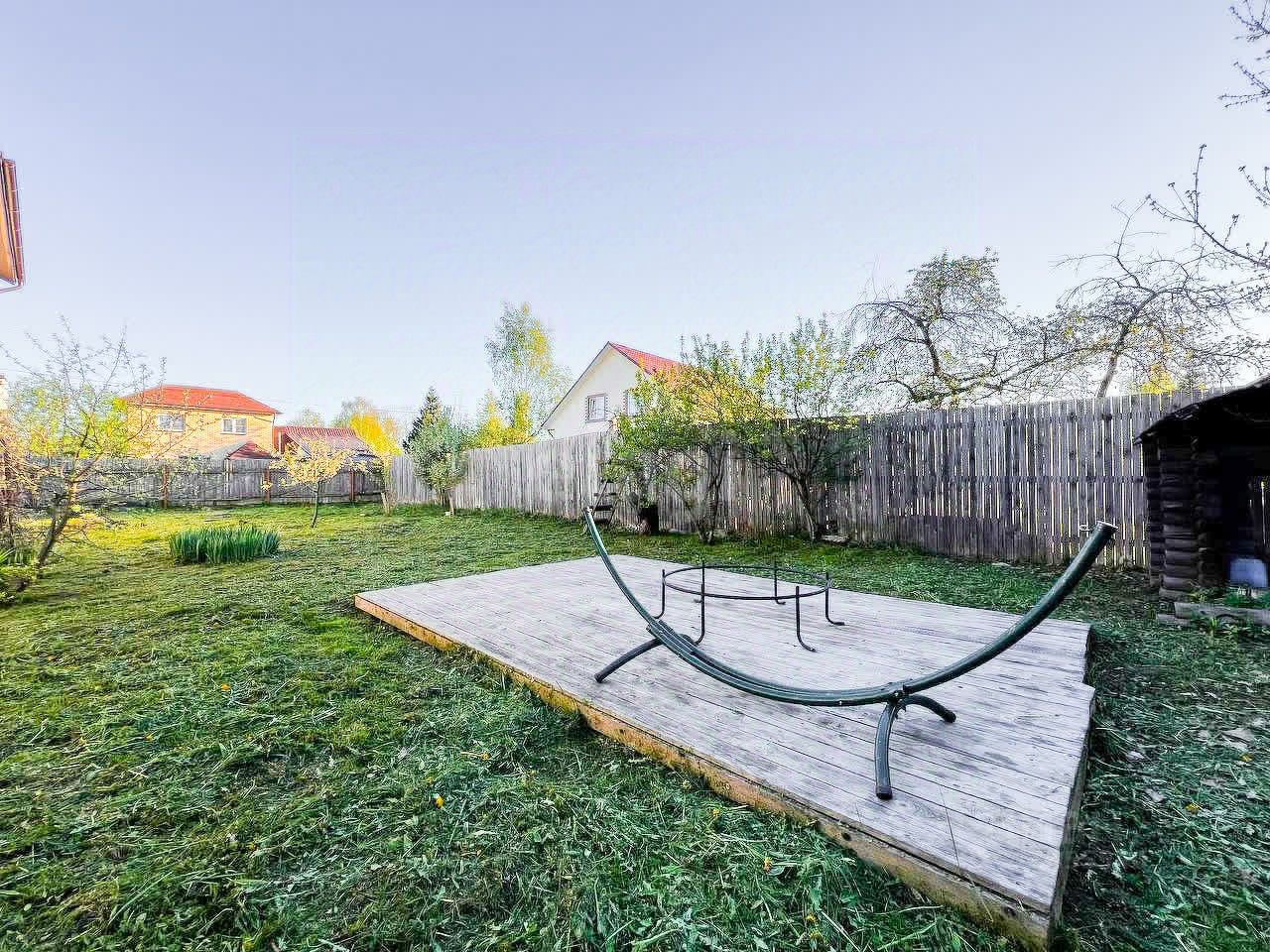 Во дворе есть крытая беседка (48 квадратных метра), мангальная зона. Есть возможность установить бассейн. Так же есть сарай, плодовые деревья и зона отдыха на свежем воздухе.