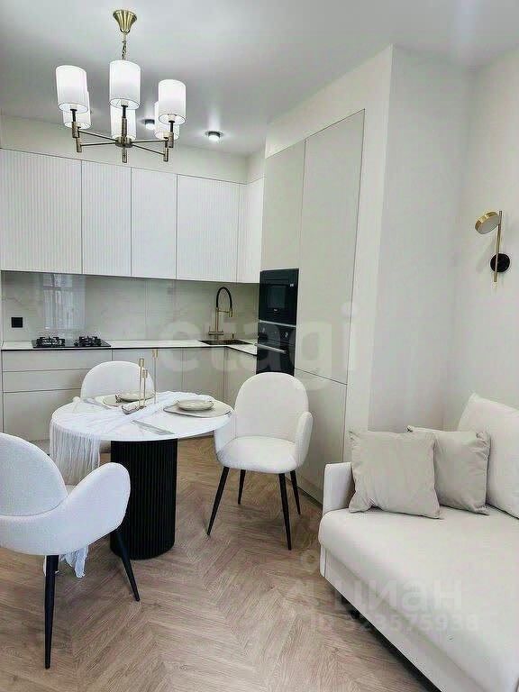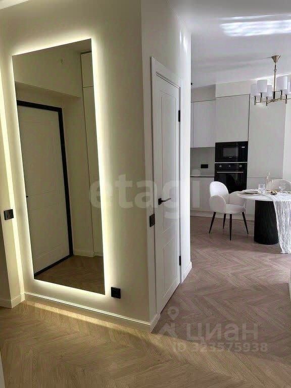 В квартире: установлены напольные конвекторы, теплый пол в санузле, сплит-система (охлаждение, обогрев, вентиляция и осушение, с wi-fi модулем, можно управлять Алисой). Керамогранит в ванной и на балконах, встроенная сантехника, выровнены и покрашены стены, натяжные потолки везде и даже на балконе. Подсветка карниза. Ламинат Pergo (топовый бренд). Кухонный гарнитур со всей встроенной техникой (Haier), дизайнерский стол и стулья, удобный и стильный диван со сменным чехлом, зона ТВ. На балконе зона отдыха с подвесным креслом. В спальне — шикарная кровать с подъемным механизмом и матрасом Аскона, шкаф, туалетный столик. Хранение продумано максимально: гардеробная система, постирочная, два распашных шкафа, ниша под кроватью и над инсталляцией.