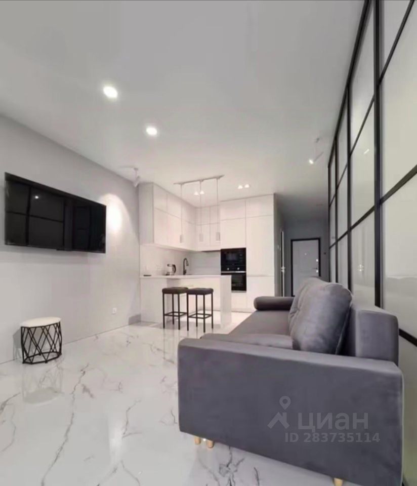 Просторная кухня-гостиная с зоной отдыха и обеденой зоной и спальня. Много мест хранения. Санузел совмещен. Тёплые полы.