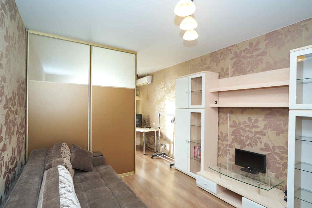 Общая площадь 42 кв.м., кухня 14 кв.м., комната 20 кв.м.. Есть вместительная кладовая. Большая лоджия. Просторная прихожая.