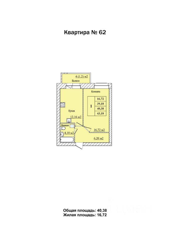 Общая площадь40,38 м2