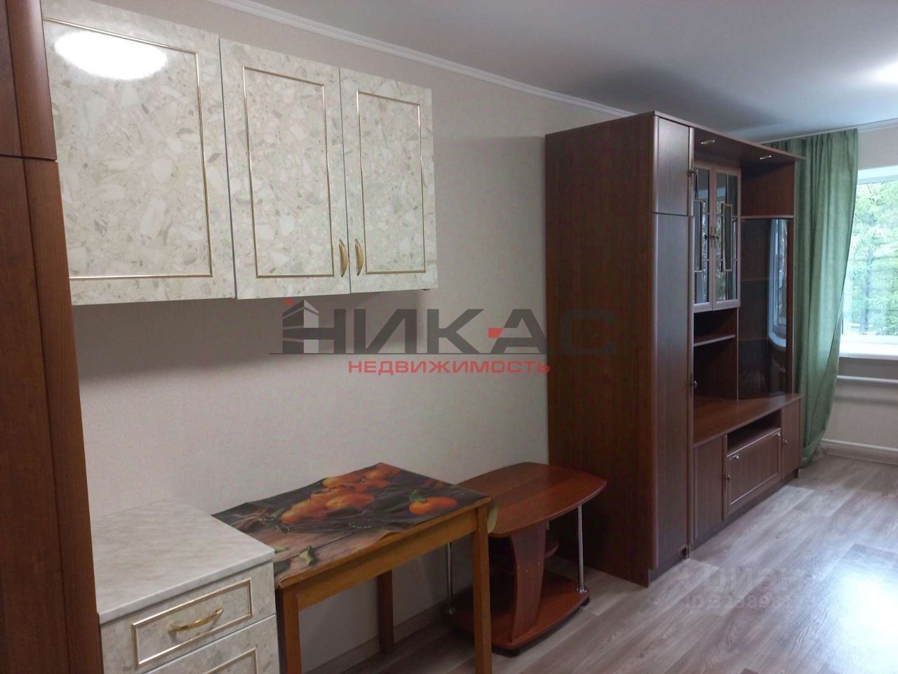 Есть все необходимое для проживания: кухонный гарнитур, диван раскладной, стенка, кухонный стол, стиральная машина, холодильник. Комната очень светлая, тёплая и уютная. Ремонт свежий, комната чистая.