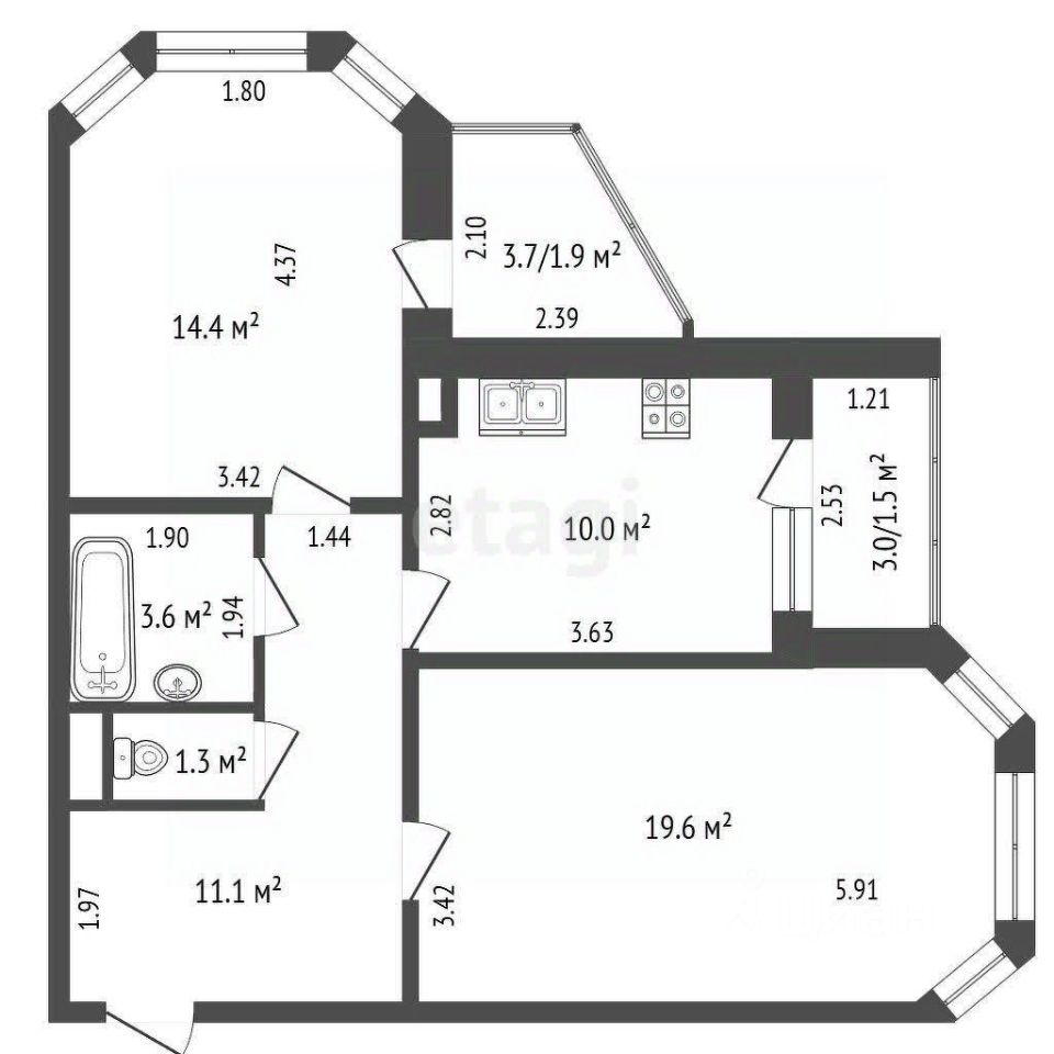 Продаётся замечательная светлая и уютная квартира с дизайнерской планировкой! Просторные комнаты с эркерными окнами наполняют квартиру естественным светом. Две большие лоджии обеспечивают дополнительное пространство для отдыха или хранения. Кухня удобной продуманной планировки. Большая комната грамотно зонирована на спальню и гостиную — решение, которое делает пространство функциональным и комфортным. Оставляем часть мебели, включая свежий кухонный гарнитур, остальное — по договорённости. О доме и инфраструктуре: Во дворе расположены детская и спортивная площадки. В шаговой доступности ТЦ ''Фараон'' и множество сетевых магазинов. Рядом находятся школы, детские сады, колледжи и университеты.