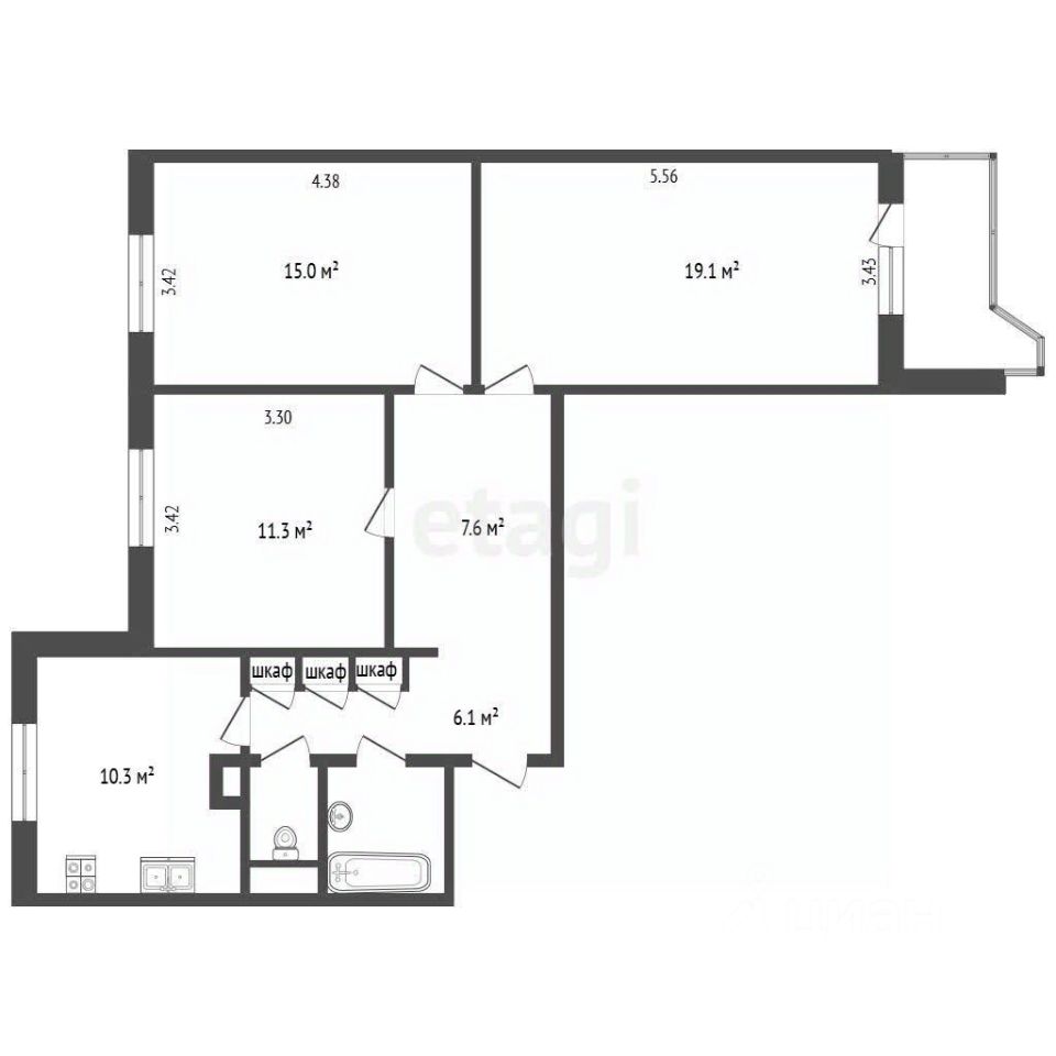 Планировка: Все три комнаты изолированы, что позволяет каждому члену семьи иметь свое личное пространство. Комфорт: Просторная кухня, где легко поместится вся семья, раздельный санузел и большая лоджия. Жить тепло и тихо: Квартира очень теплая, не угловая, с прекрасной звукоизоляцией. Отличные виды: С одной стороны — уютный двор и вид на детский сад, с другой — красивый панорамный вид на местность.