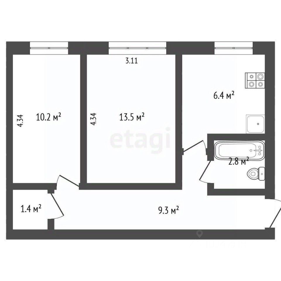 Общая площадь43,6 м2