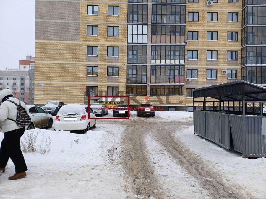 Выделенная парковка для авто перед входом в помещение. Хорошие подъездные пути к зданию. Большое количество многоэтажных домов вокруг.