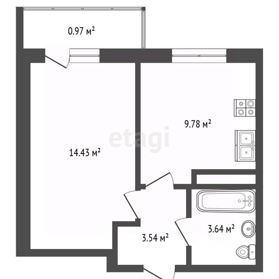 Общая площадь: [ 32.36м²] Жилая площадь: [ 14.43м²] Площадь кухни:[9.78 м²] Этаж: [10]