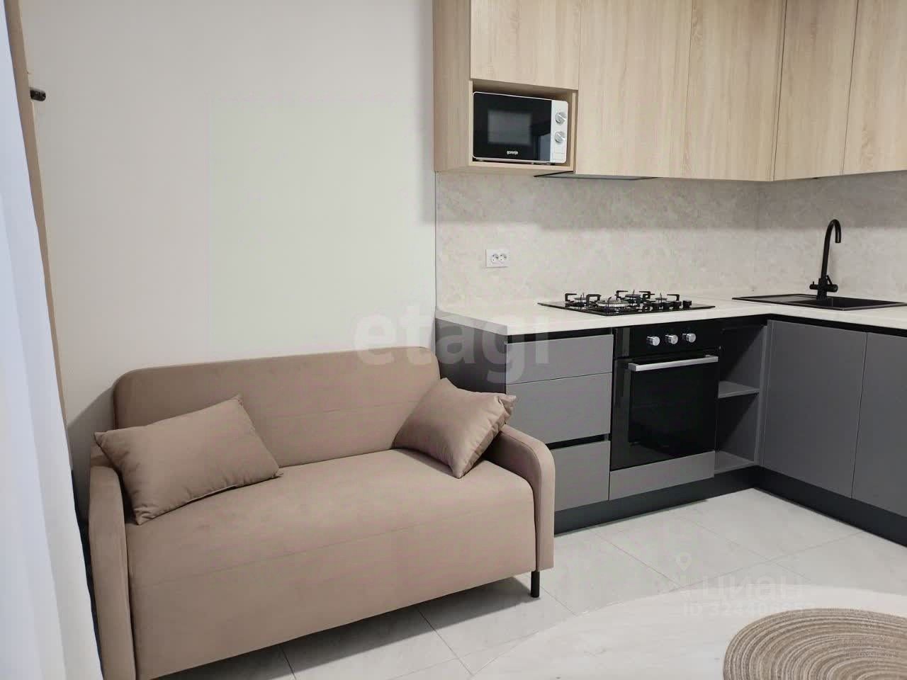 • Кухонный гарнитур со встроенной техникой (варочная панель, духовой шкаф, вытяжка, посудомоечная машина, микроволновка)