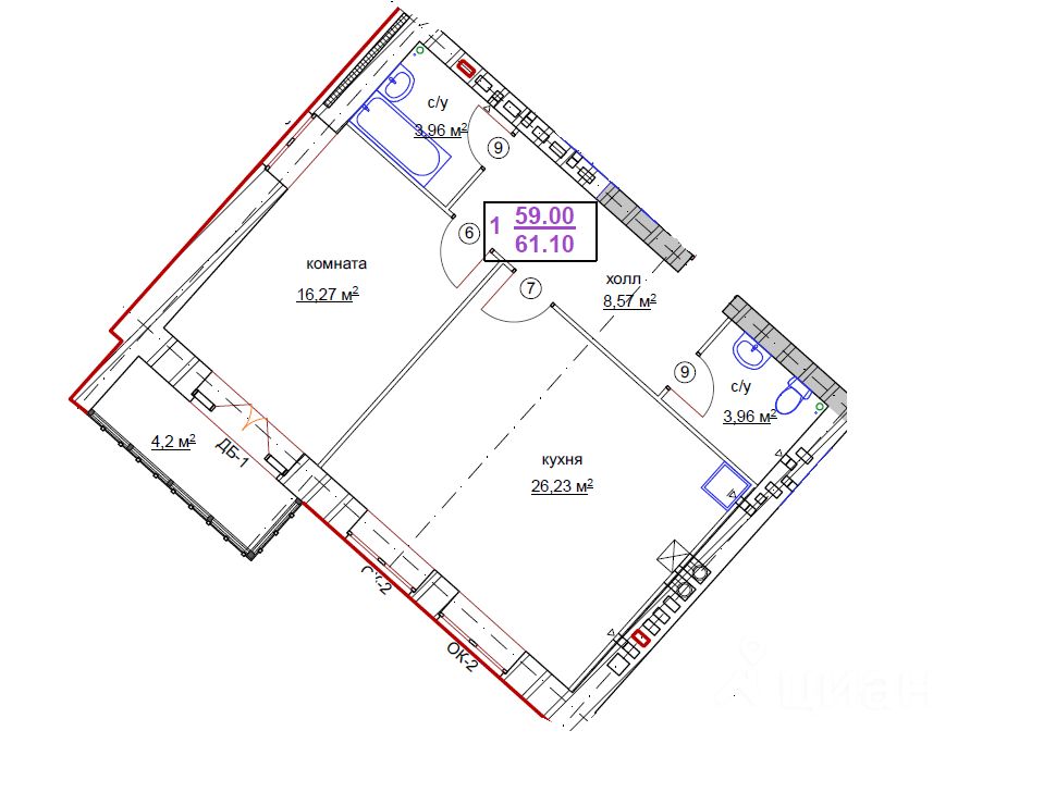 Особенности дома Кирпичный дом — тишина и комфорт Индивидуальное газовое отопление — экономия до 40% на платежах Свободная планировка — реализуйте любую дизайнерскую идею Благоустроенная территория — огороженная территория, детская площадка и 20 парковочных мест Умная планировка 61,1 м² • Большая кухня-гостиная 26,23 м²