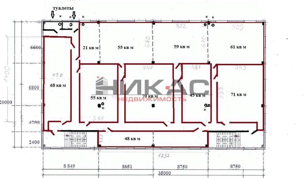 Площадь: от 300 до 700 кв м. Возможно деление от 30 кв м (план прилагается).