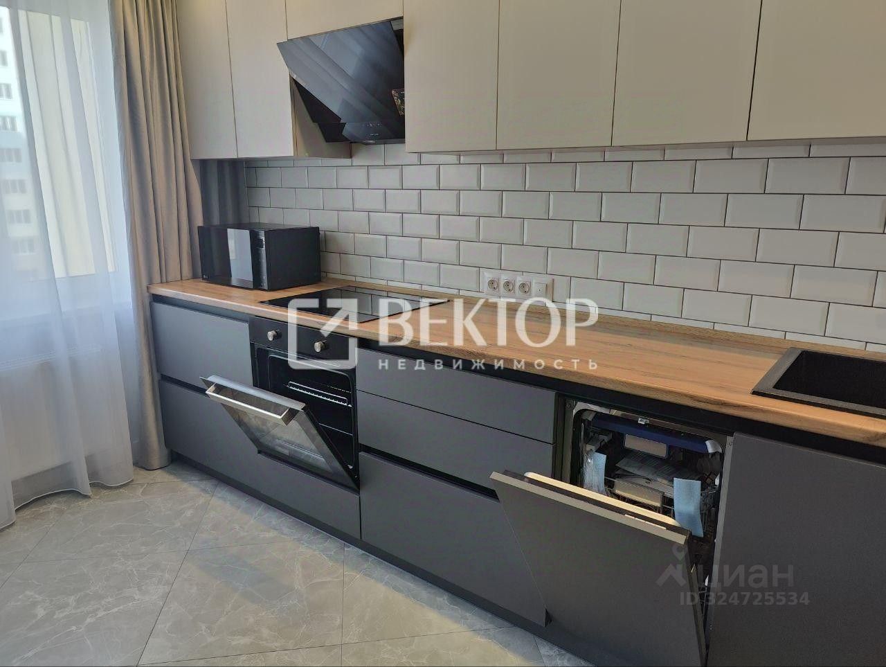 Состояние - Муха Не Сидела! Квартира очень тёплая и солнечная, с прекрасной атмосферой уюта и комфорта. Состояние только после ремонта, без фактического проживания! Дом со сниженным тарифом на электроэнергию. Установлено круговое видеонаблюдение онлайн, камеры в подъездах и лифтах, парковка с двух сторон. Ремонт делали добросовестно, для себя, на долгие годы. Всё, что было сдано от застройщика, переделывали полностью: начиная от сантехники (установлен бойлер на 80 л с разводкой по всей квартире - в санузле и на кухне, также везде установлена автоматическая дистанционная система защиты от протечек воды - ''Нептун'') и заканчивая стенами, полом и проводкой. В квартире установлены тёплые полы: кухня, прихожая, вся коридорная зона, санузел и ванна выложены керамогранитом 6060 (серый мрамор). В спальне и зале уложен износостойкий ламинат (Quick-Step, 33 класс). В спальне и на кухне сделаны потолки с RGB-подсветкой карнизов - можно выбрать любой цвет и световые эффекты, управление осуществляется с телефона или пульта. Всё освещение в квартире светодиодное, что позволяет существенно экономить электроэнергию. Отделка стен во всей квартире выполнена с использованием английской премиум-краски Little Greene - без обоев! Выглядит очень красиво, практично и модно. Проводка скрытая, всё грамотно разведено, провода для интернета, TV и HDMI в обеих комнатах заложены в стены. Установлены две сплит-системы - в зале и на кухне - для поддержания комфортного климата. В гостиной вас встретит комфортный диван с механизмом ''книжка'' насыщенного изумрудного цвета - обивка из велюра, спальное место размером 200145 см. Светлая рабочая зона у окна будет удобна как при дневном, так и при искусственном освещении - столешница из износостойкого пластика размером 140300 см позволит комфортно разместиться вдвоём. Розетки, интернет и HDMI-кабели проложены под столом, есть выдвижные шкафы с доводчиками, электроштора blackout с дистанционным управлением и люстра с множеством режимов работы и отдельным пультом. Также в гостиной установлена минималистичная стенка с подсветкой и стеклянными витринами. В центральной зоне спальни расположена кровать с подъёмным механизмом и местом для хранения размером 160200 см. Высокий матрас средней жёсткости обеспечит комфортный сон. Шторы blackout с RGB-подсветкой и дистанционным управлением создадут уютную атмосферу, а люстра с несколькими режимами работы дополнит картину. Есть выход на открытый балкон, где проведён свет, а пол выложен керамогранитом. Кухня порадует встроенным гарнитуром: низ выполнен из тёмно-серого матового пластика, верх - из светло-серого матового, профиль ''Гола''. Установлен трёхступенчатый фильтр питьевой воды, каменная мойка и сантехника. Встроенная бытовая техника включает индукционную варочную панель, духовой шкаф, посудомойку, вытяжку (''Krona'', Турция), холодильник, стирально-сушильную машину Indesit, микроволновку и TV LG с классом энергосбережения ААА - всё новое. Материал штор и стульев - велюр. Предусмотрено четыре зоны