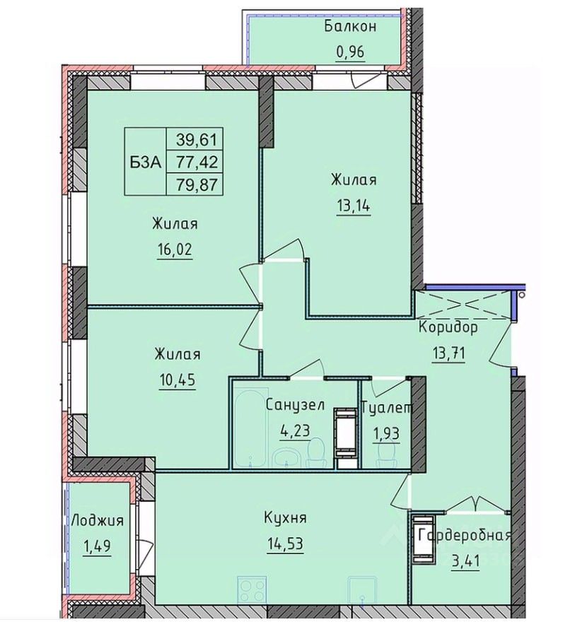 Два санузла: совмещенный (4.23 м²) + отдельная уборная (1.93 м²). Большой коридор (13,71 м²), также есть гардеробная (3,41 м²) Есть лоджия и балкон Идеальное расположение: вся инфраструктура в шаговой доступности
