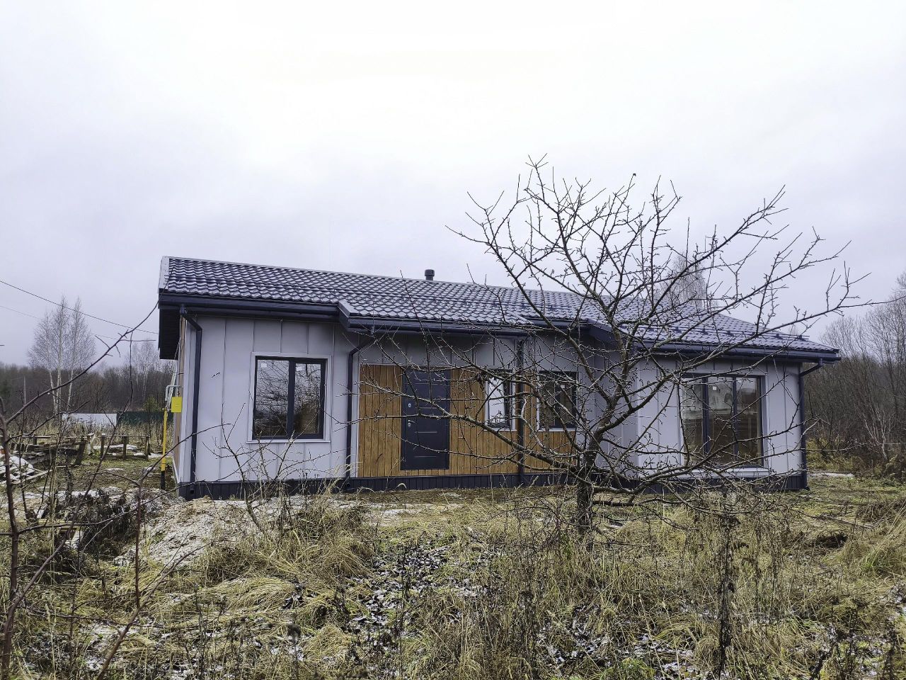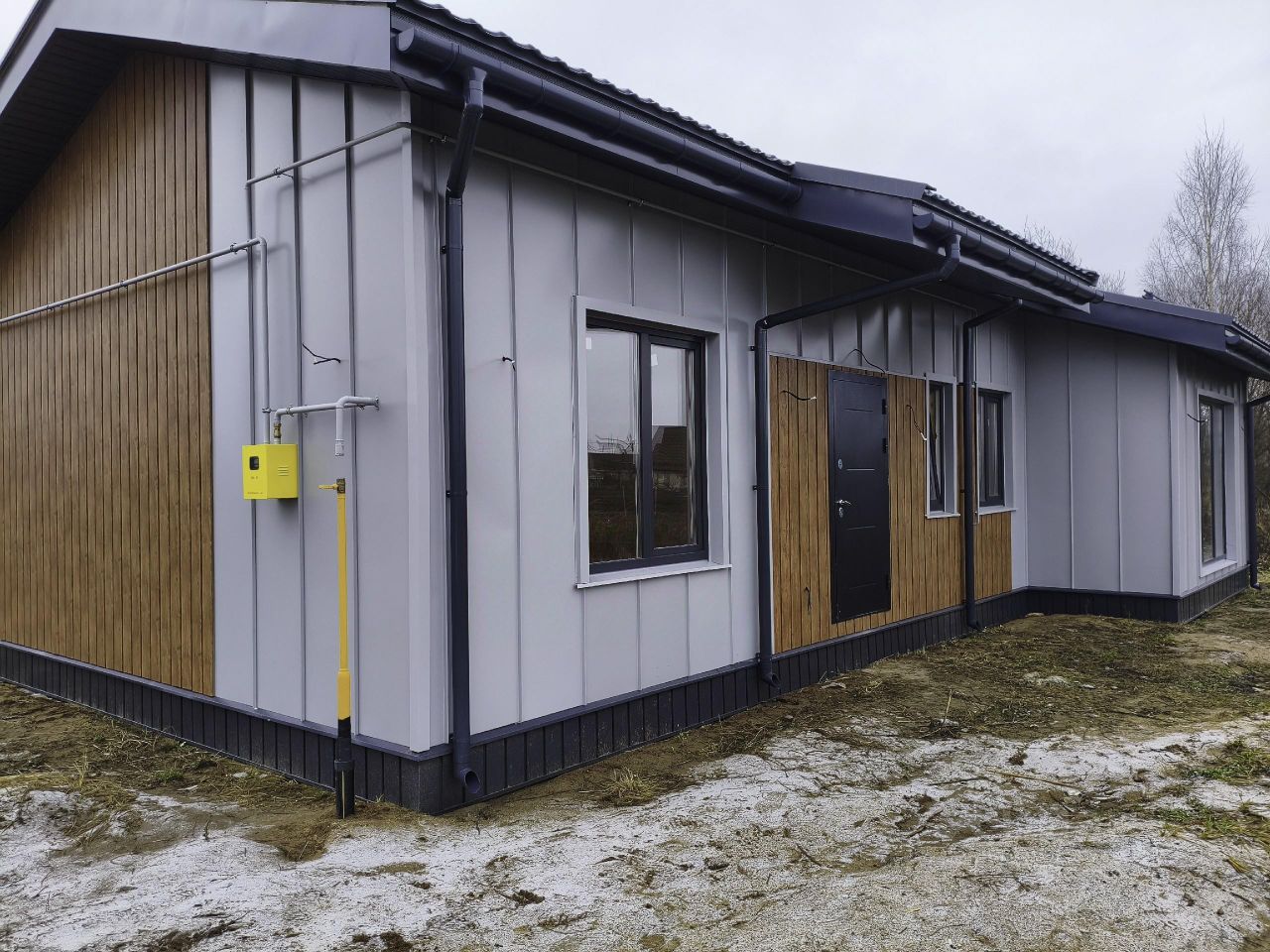 Дом: общей площадью 99,2 кв.м, одноэтажный. Фундамент — монолитная плита. Построен по каркасной технологии, с использованием дорогих и современных материалов по индивидуальному проекту и дизайну с утеплением всего периметра 200мм. Крыша - металлическая черепица. Внешняя отделка - металосайдинг. Внутренняя отделка - имитация бруса. Дорогие и качественные окна.