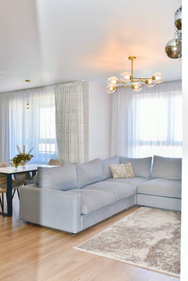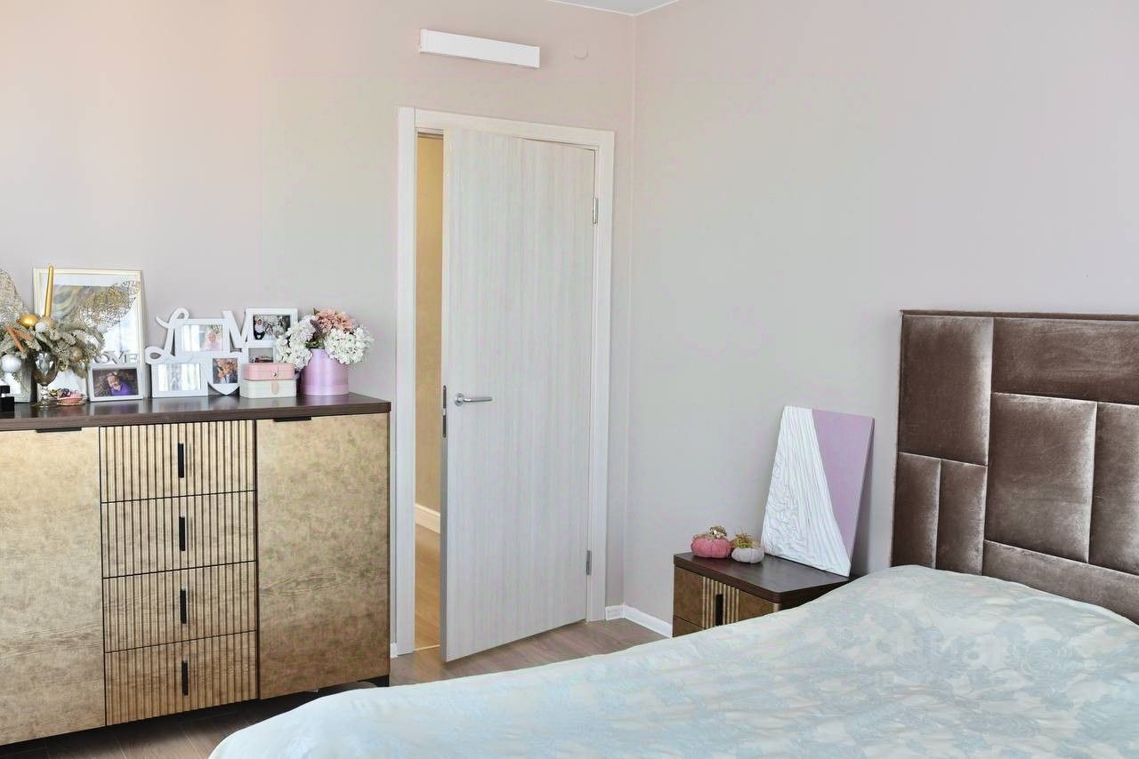 Панорамный вид на город с 17-го этажа и теплый застекленный балкон. Качественный современный ремонт: натяжные потолки, новый ламинат, санузлы в плитке. Тихий, благоустроенный двор без машин с современными детскими площадками. Отличная инфраструктура для семьи прямо рядом с домом. Детали объекта: Планировка: Изолированные комнаты (19 м² и 13 м²), две раздельные ванные комнаты (санузел в плитке). Состояние: Дизайнерский ремонт высокого уровня. В кухне-гостиной и коридоре уложен новый ламинат, установлены натяжные потолки. Видовые характеристики: Яркая, солнечная квартира с захватывающим видом из окон. Мебель и техника: Вся современная мебель премиальных брендов и кухонный гарнитур (эмаль) с дорогой встроенной техникой (холодильник, духовка, варочная панель, вытяжка, посудомоечная машина и пр.) могут быть переданы новому собственнику за отдельную договоренность, что делает заезд максимально простым.
