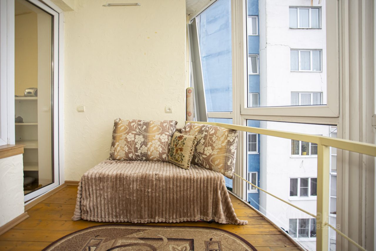 Большая кухня, диван, выход на балкон, как отдельная комната. Панорамный балкон с хорошим видом.