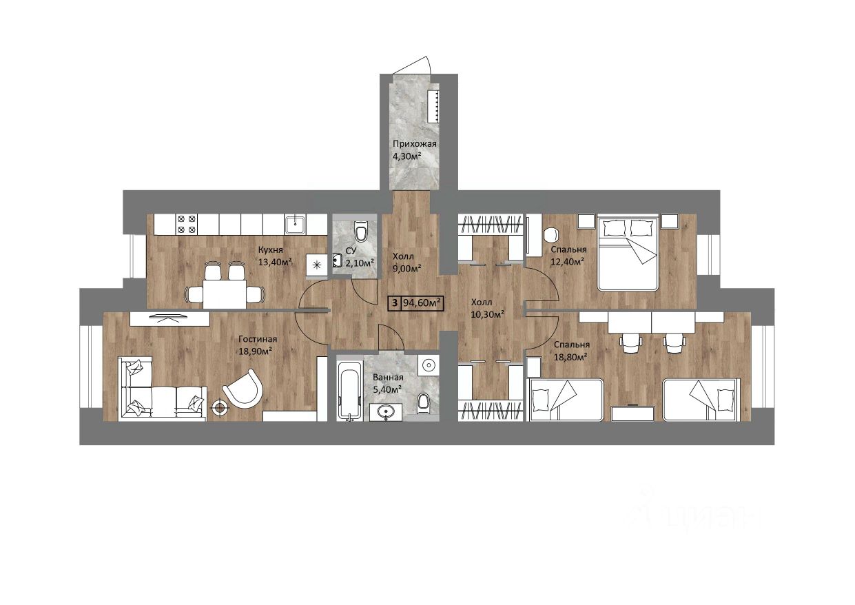 продам 3-к, Старая Костромская, 68 890 000 ₽