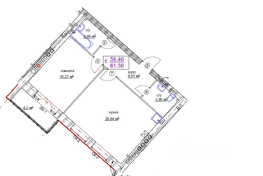 Сбалансированная площадь 61,5 м²